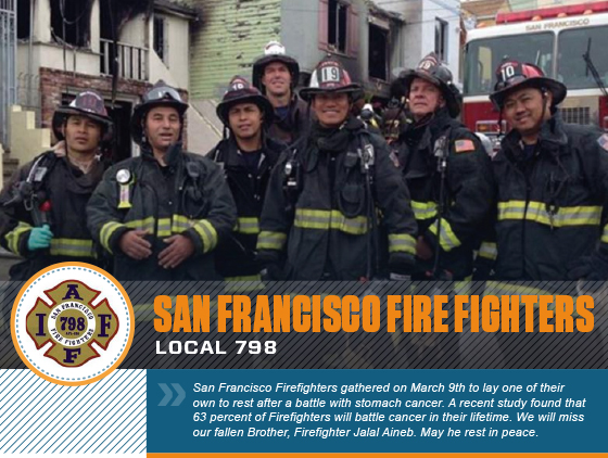 Firefighters and police officers in Tri-Valley paid homage to fallen San Francisco firefighter Jalal Aineb Thursday. Aineb died this week after battling cancer. His procession was met by firefighters in mourning from Livermore-Pleasanton and Alameda County fire departments, who congregated on the freeway overpasses along I-580 to pay their respects to their fallen brother.