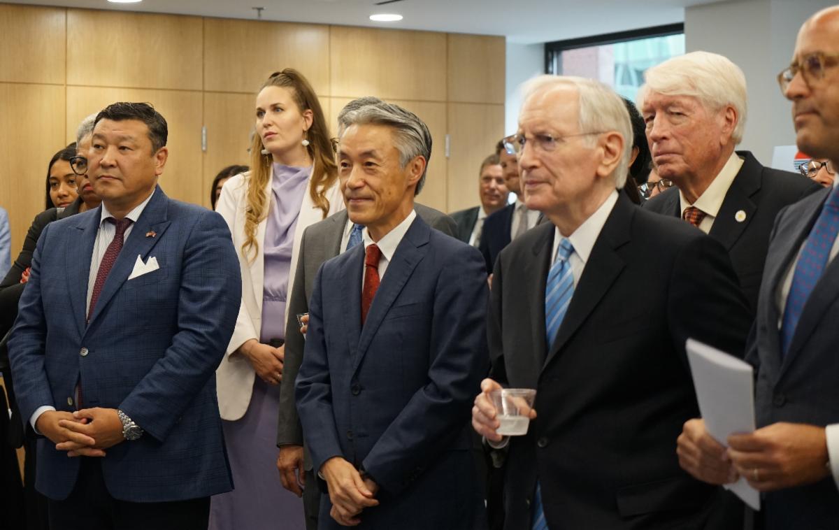 Photo (left to right): H.E. Batbayar Ulziidelger, ambassador of Mongolia to the United States; H.E. Shigeo Yamada, ambassador of Japan to the United States; H.E. Philip Verveer, former U.S. Coordinator for International Communications and Information Policy; and Mr. Nicholas Snyder, director of the Office of Japanese Affairs at the U.S. Department of State