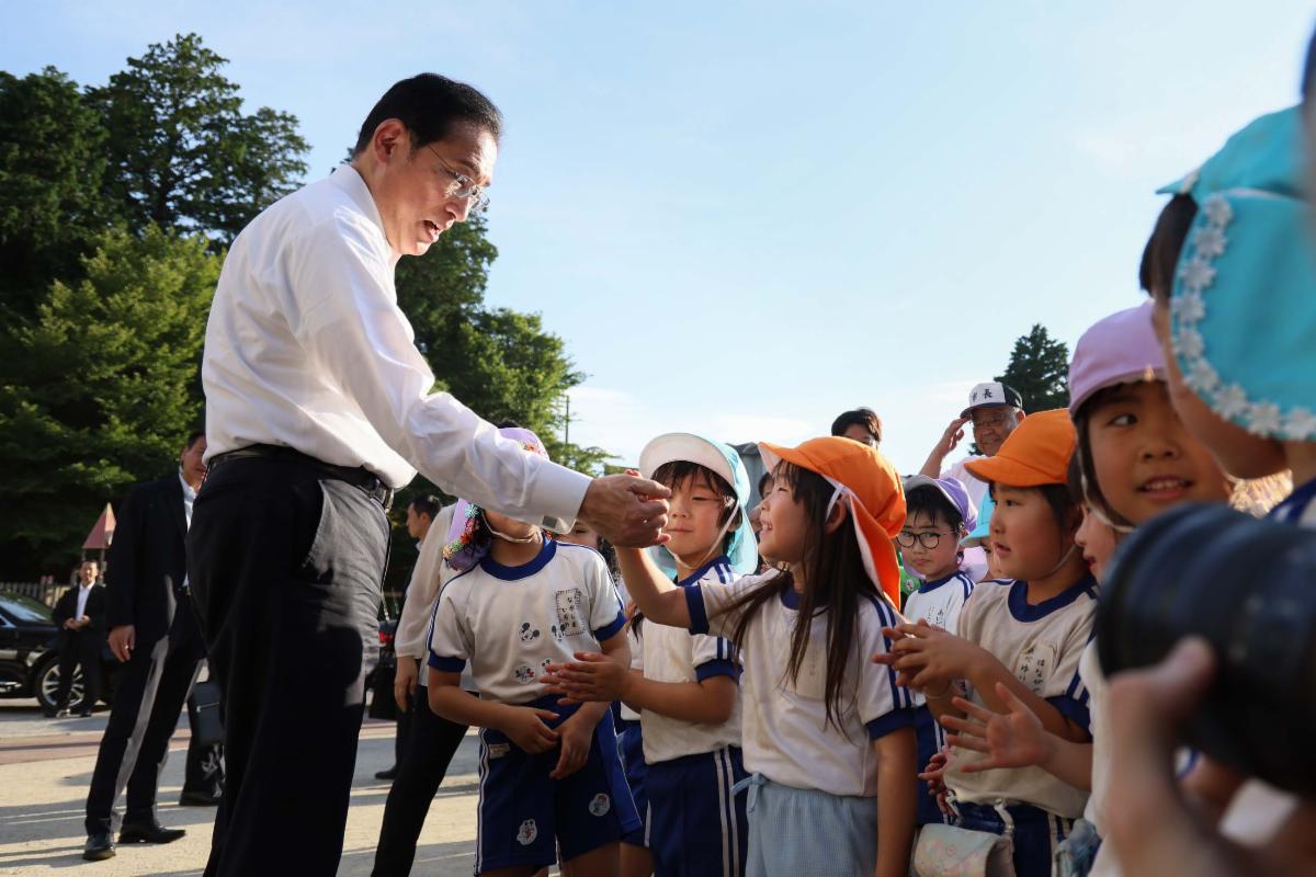 Photo: Prime Minister Fumio Kishida visiting a kindergarten in Chiba Prefecture on August 1, 2024. (Prime Minister’s Office of Japan)