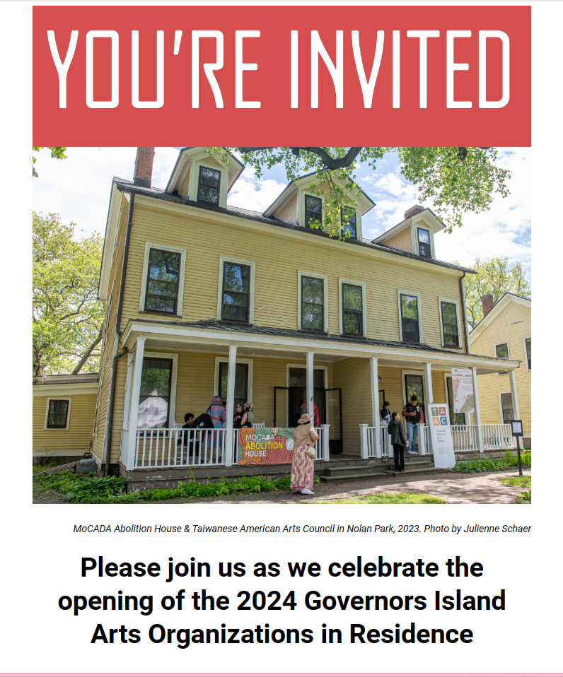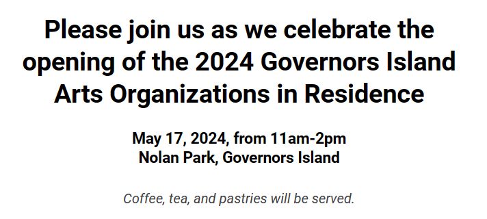 Save the date: Saturday May 18, 2024, at house 7b, Nolan Park, Governors Island.