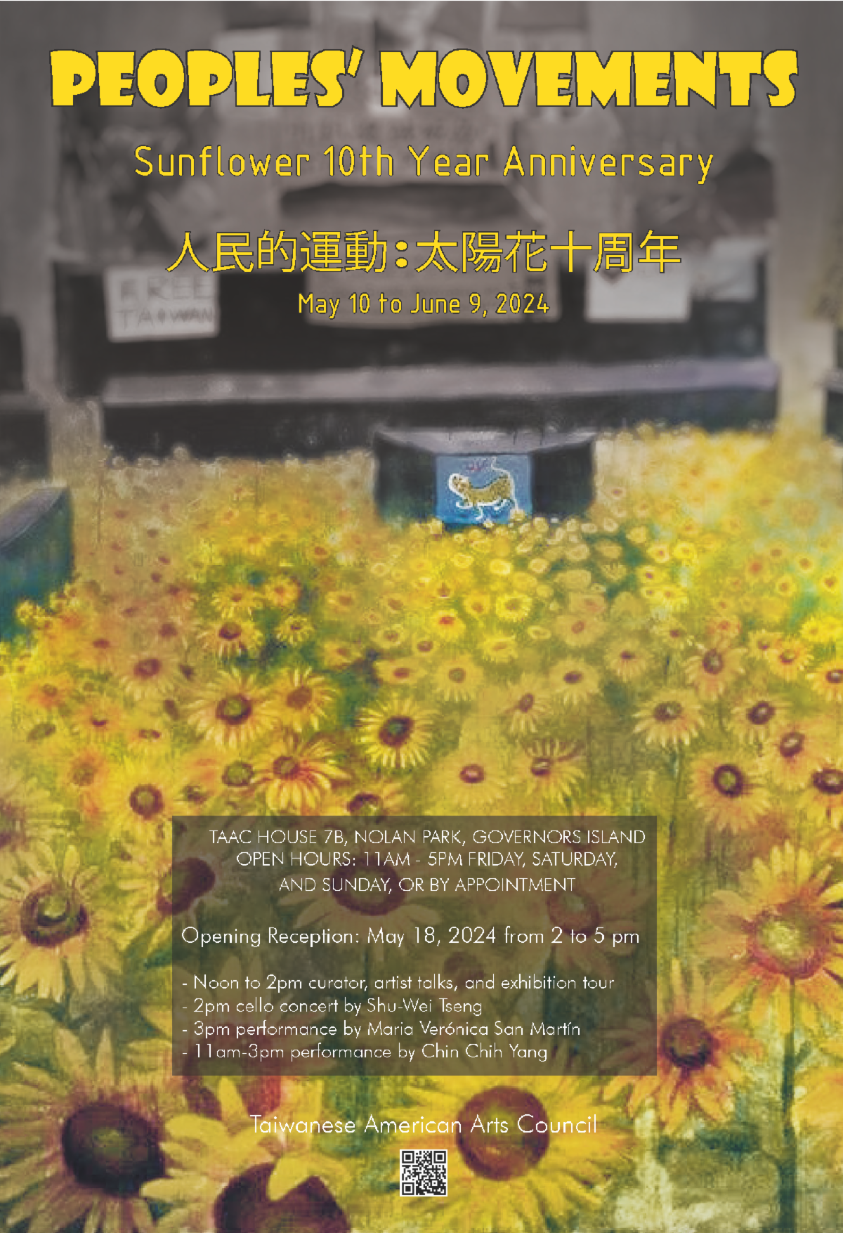 In March 2014, young people led Taiwan’s Sunflower Movement which in time completely reversed the course of Taiwan’s foreign and domestic policy. On the 10th anniversary of the movement, we organize a program and exhibition which points out that social and political change is won through the brave spirit and effort of the movement leaders and the people - not awarded as a lucky accident. This exhibition will involve 10 more artists celebrating peoples’ political movements that took place around the world circa 2014. We select 5 movements: the Sunflower Movement, the Arab Spring, the Chilean Winter, the Ukrainian Euromaidan movement, and Hong Kong’s Umbrella Movement – all of approximately the same era as Taiwan’s Sunflower movement – to which artists will respond.