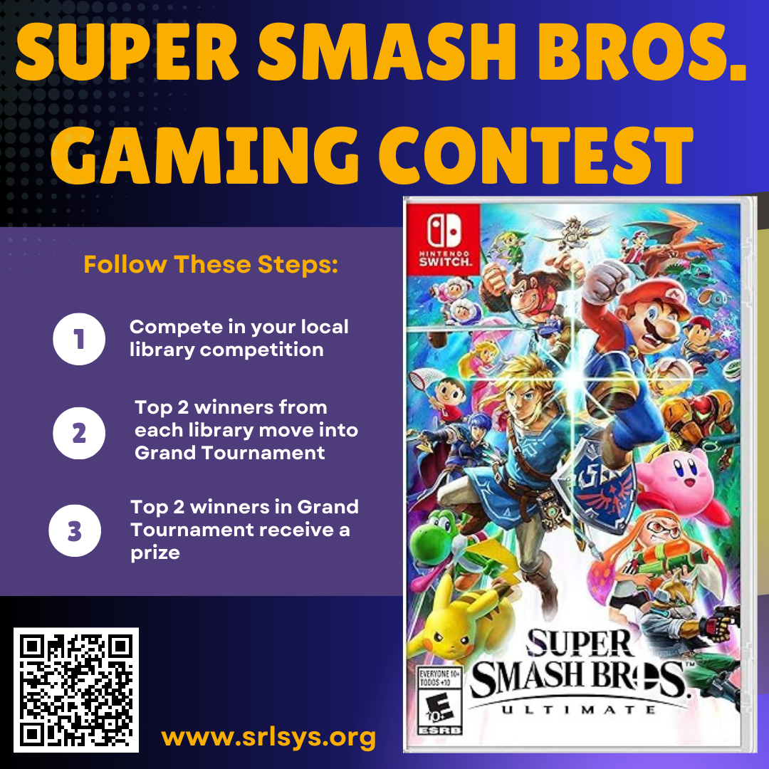 We are excited that we will have two video gaming tournaments. Each week, we will offer a gaming tournament at one of our branches, so everyone has a chance to participate. Our two gaming tournaments will be Super Smash Bros. and Just Dance 2024! The top 2 winners from each library will be entered into the final Grand Tournament for each tournament at the end of SRP in Douglas. The top two winners will receive a prize, for both Just Dance 2024 and Super Smash Bros. grand tournaments.