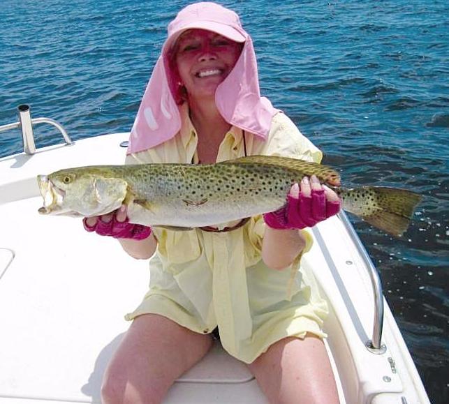 Cynthia Caucci landed this large trout on the flats near Steinhatchee.
