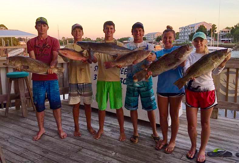 Sea Hag Marina Staffers, Charlie Valentine, Chase-N-Fish, James Dechow, Brett Molzen, Maddy Fletcher, and Chaeli Norwood ventured offshore to bring in and land a wide variety of fish. Shown here are gag grouper, red grouper, mangrove snapper, and cobia.