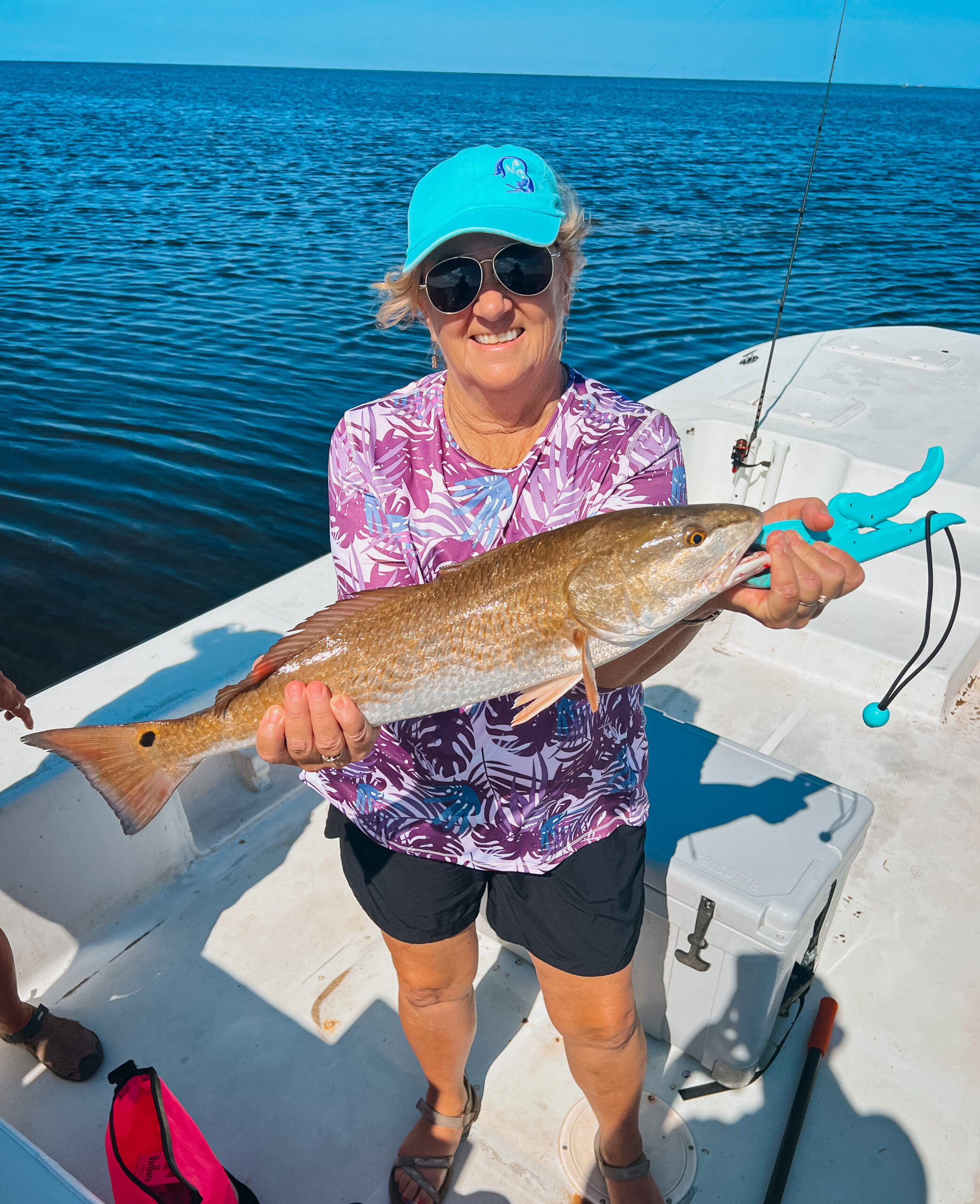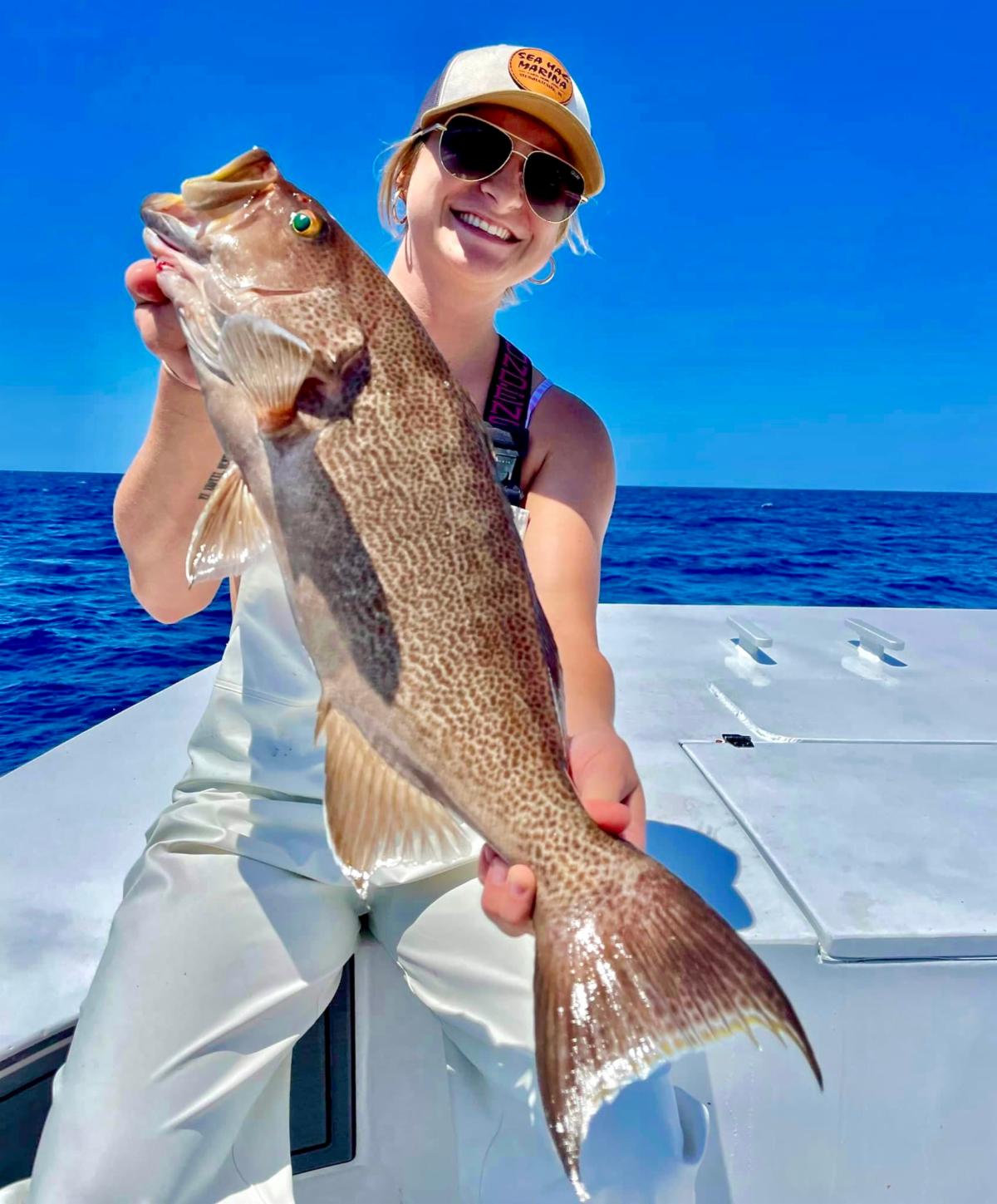 2nd Place Winner of the Blue Diamond Tournament, Laura Jones, reeled the largest red grouper while fishing with Capt. Chase Norwood.