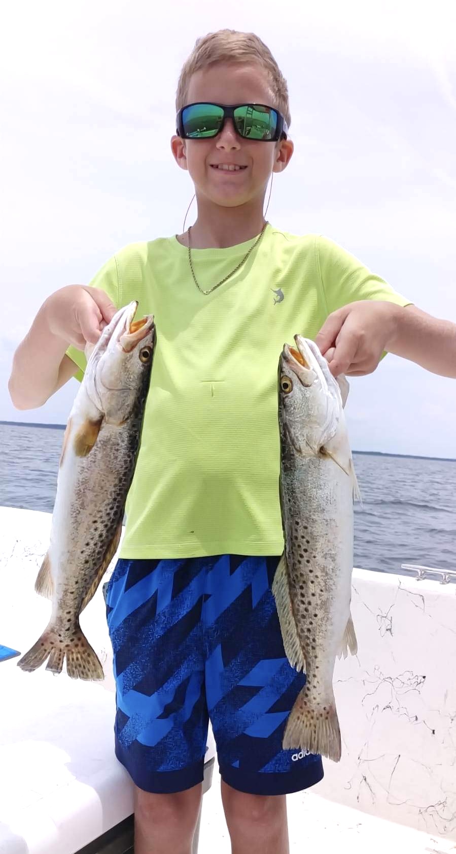 | Captain Steve & Ann Kroll took a trip with Capt. Chase Norwood where they caught these monster red snapper | Super fisherman, Noah, is holding up two awesome trout he caught! | |