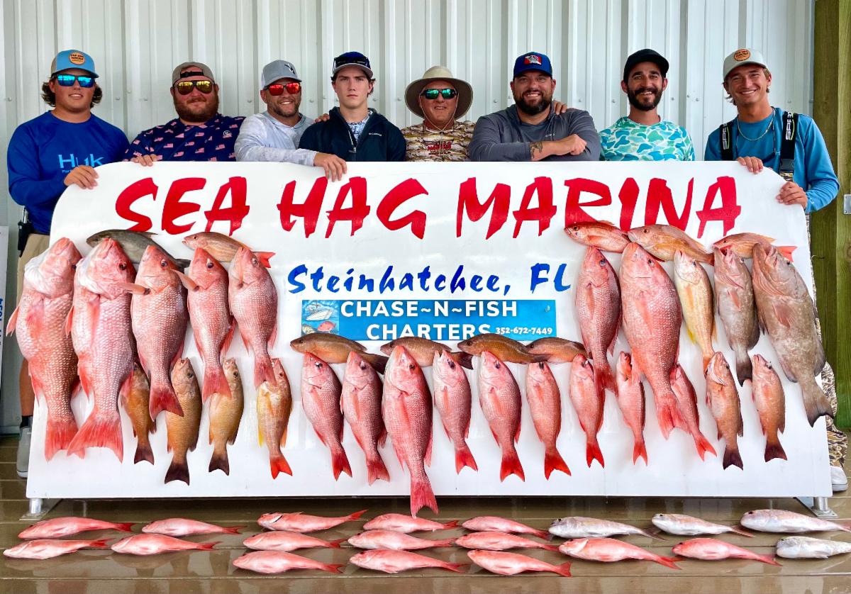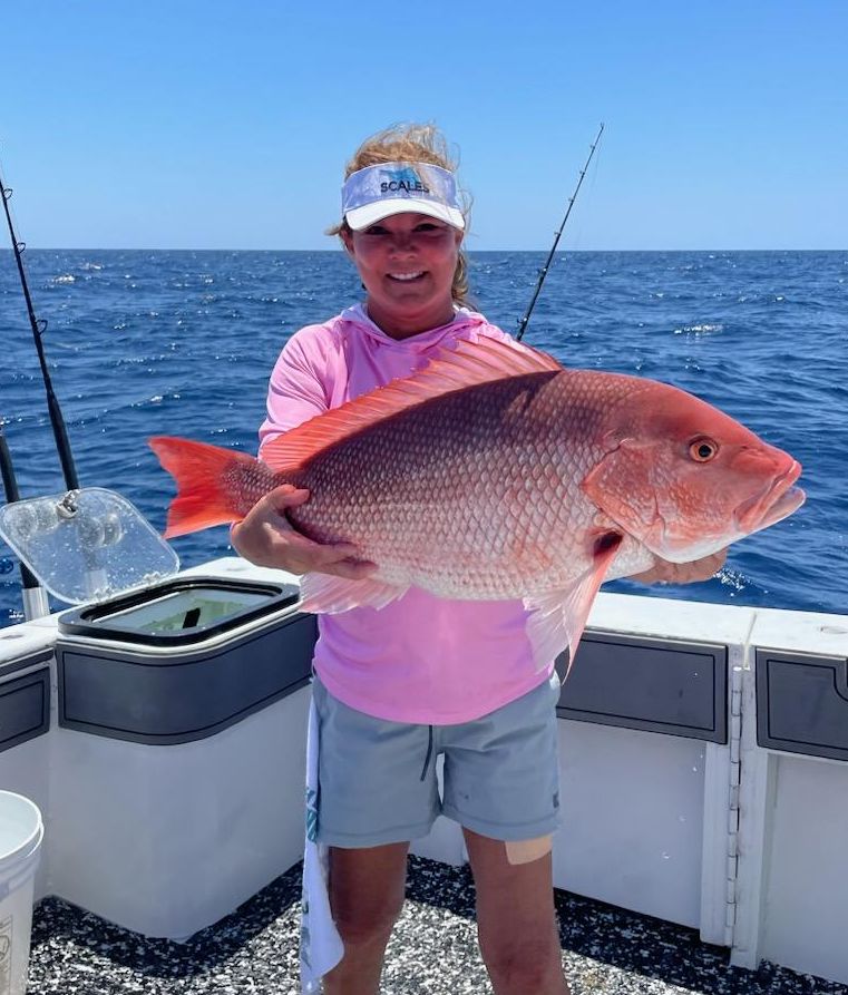 | Captain Steve Kroll took out the guys for an offshore trip with Capt. Chase Norwood and first-mate, Cooper Nemcovic! They brought back some huge red snapper, mangrove snapper, red grouper & more! | The Chase N Fish crew have been catching some seriously BIG red snapper this season! | Julie Hause caught this 32 inch redfish! | |