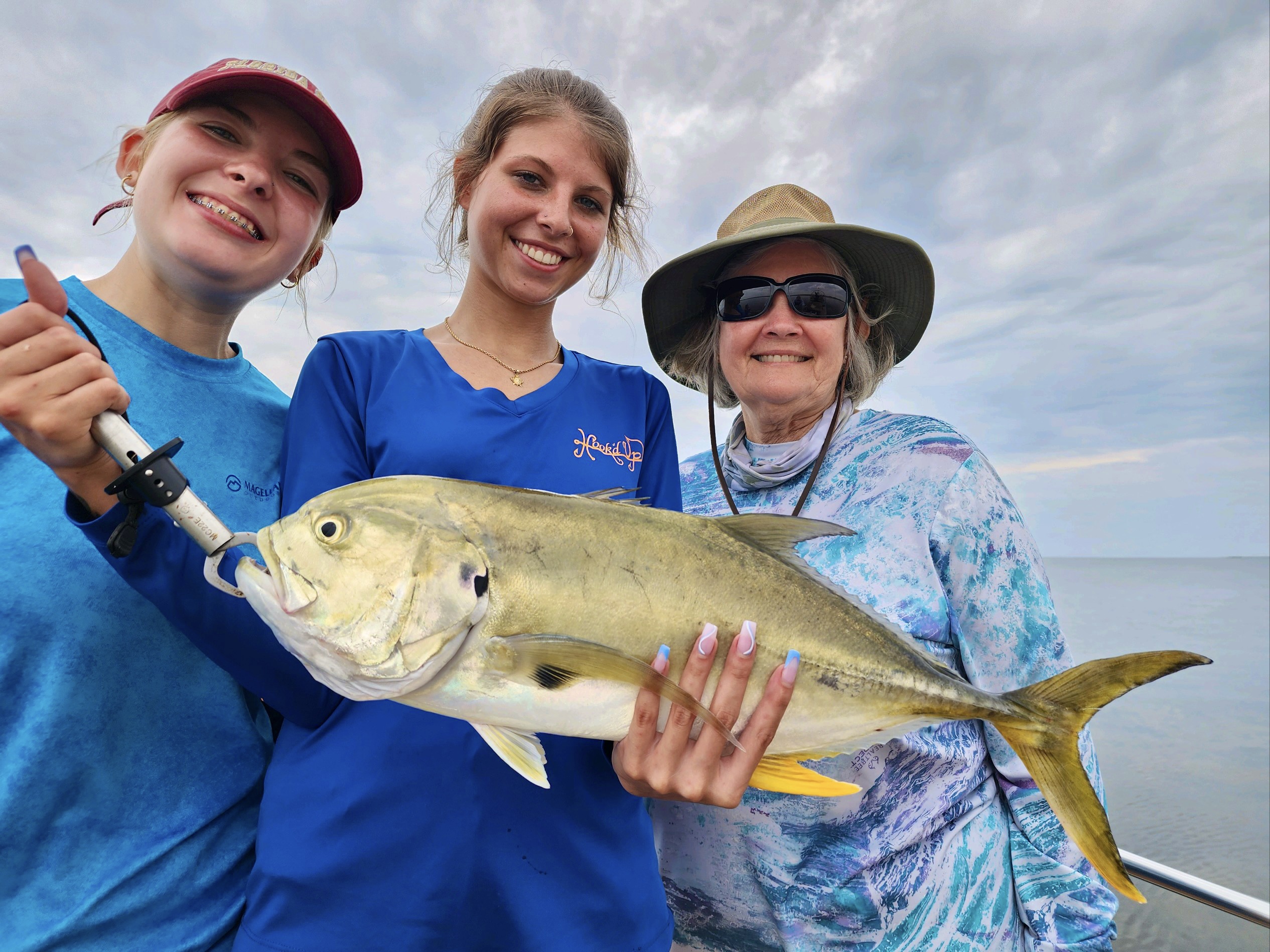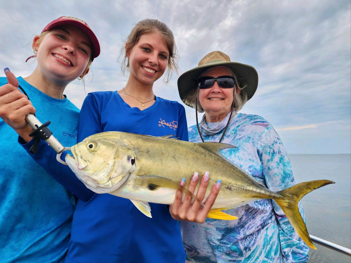 Gail, Izzy & Sarah fought this big ol' jack crevalle while fishing with Capt. Randy Harris.