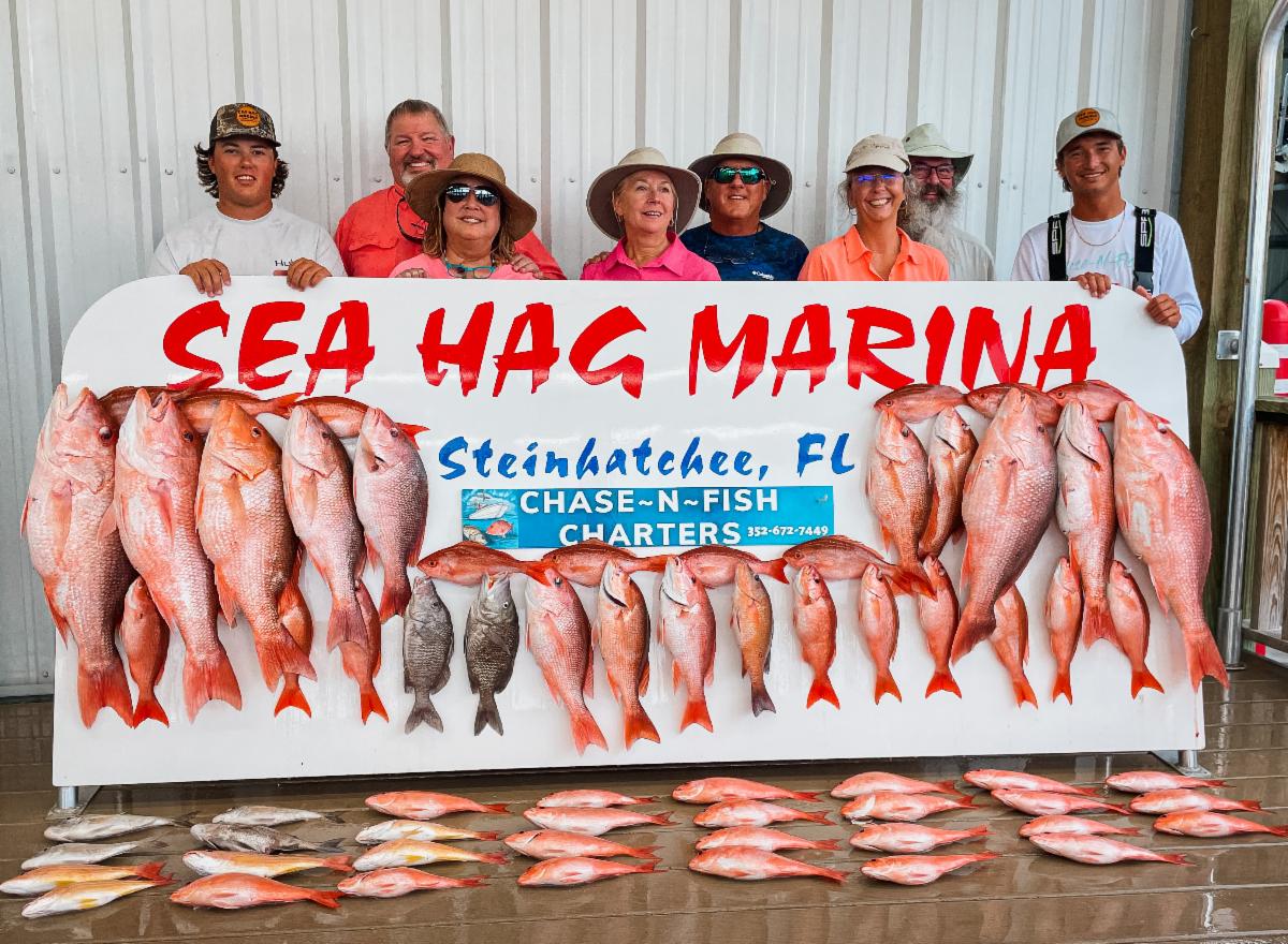 Miriam Alexander landed this MASSIVE red snapper during her trip with Capt. Chase Norwood. This catch won her 1st Place in the Blue Diamond Tournament! Along with her cash winnings, Sea Hag Marina donated $250 to a charity of her choice. Ms. Miriam chose to purchase tickets to the Gulf Specimen Marine Lab in Panacea so some children in Steinhatchee could go this summer! | |