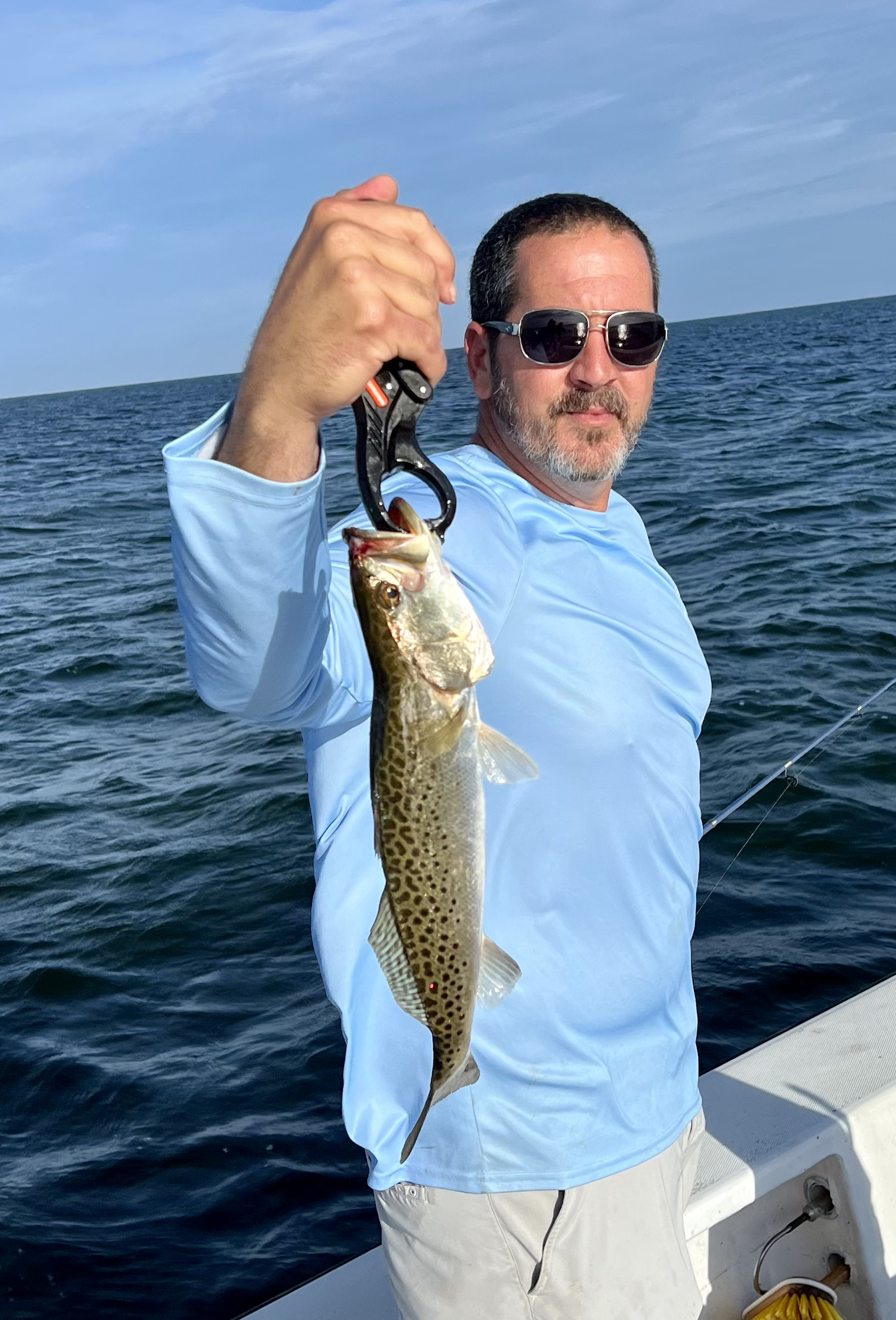 | Brandon with another quality trout he caught with Capt.Chris Chico Graham. | |
