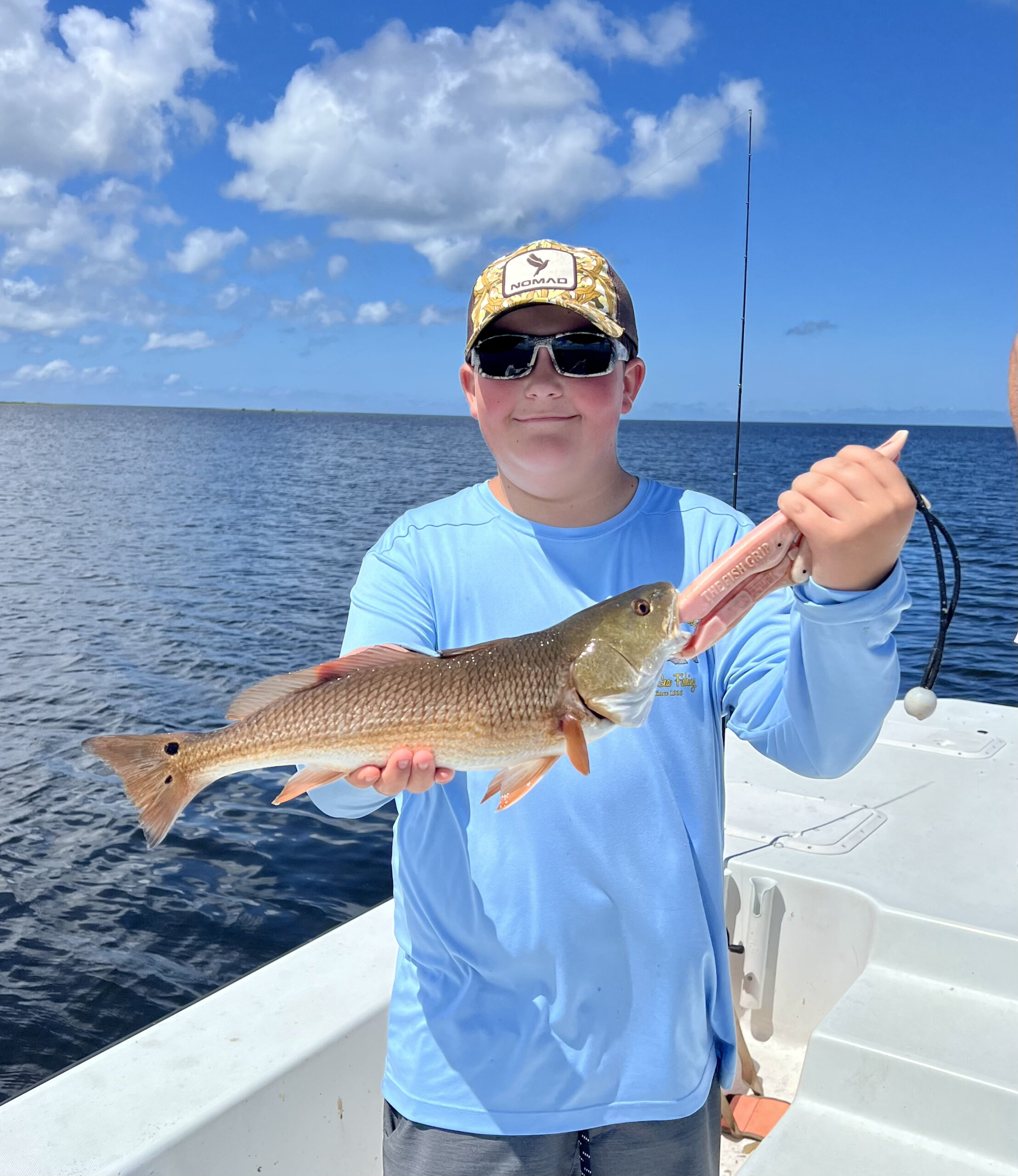 Gavin caught a perfect redfish on the flats with Capt. Chris CHico Graham.