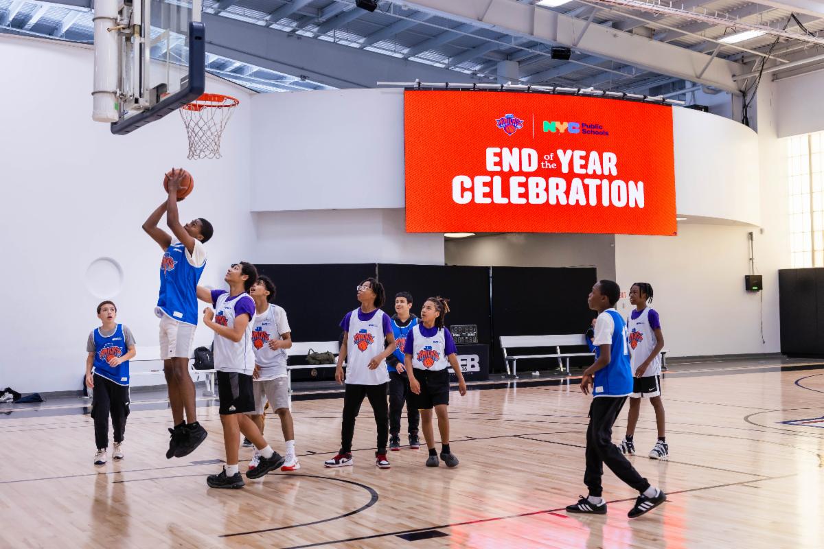 The New York Knicks hosted a culminating event for students in CHAMPS programs on Thursday, June 13, at Basketball City (opens in new tab) in Manhattan. Students who participated in CHAMPS basketball programs across the boroughs attended a special clinic with Jr. Knicks (opens in new tab) coaches. Students learned drills, worked with coaches, and received their own Knicks uniform and a basketball to take home!