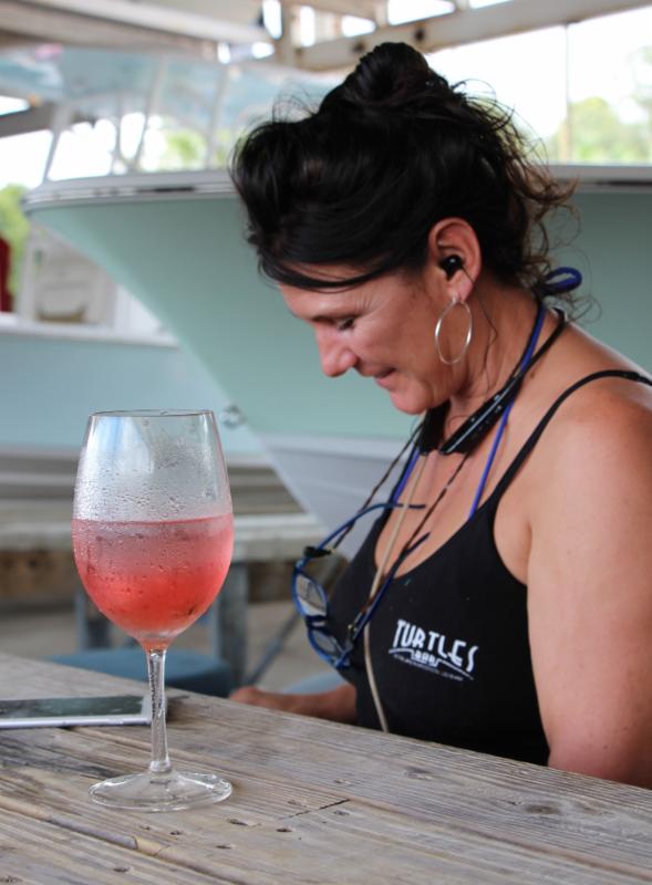Patty Powl, expert t-shirt tagger, helped out and enjoyed herself so much that she was thinking about quitting her job and becoming a permanent t-shirt tagger for the Sea Hag Marina! Her help is much appreciated.