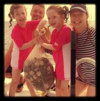 | Kinsley and Nick collect their families worth of scallops. They collected theirs south by Pepperfish Key. |
