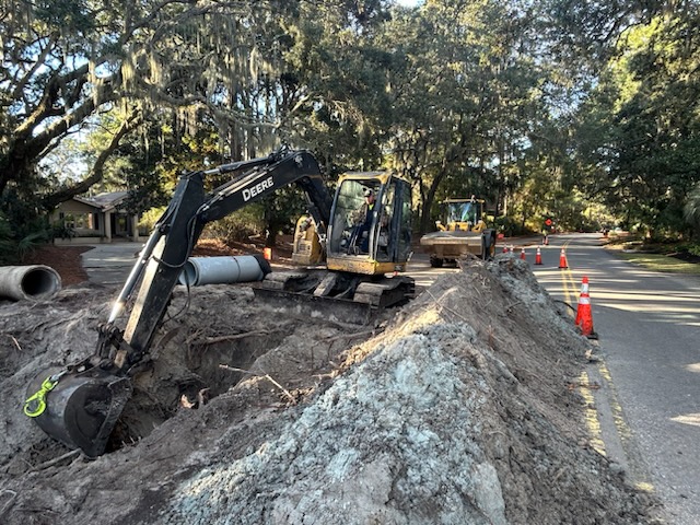 South Sea Pines Drive Infrastructure Improvement Project: Major stormwater drainage work along South Sea Pines Drive from Audubon Pond Road to Gadwall Road is in progress and is scheduled to continue over the next few weeks. | |