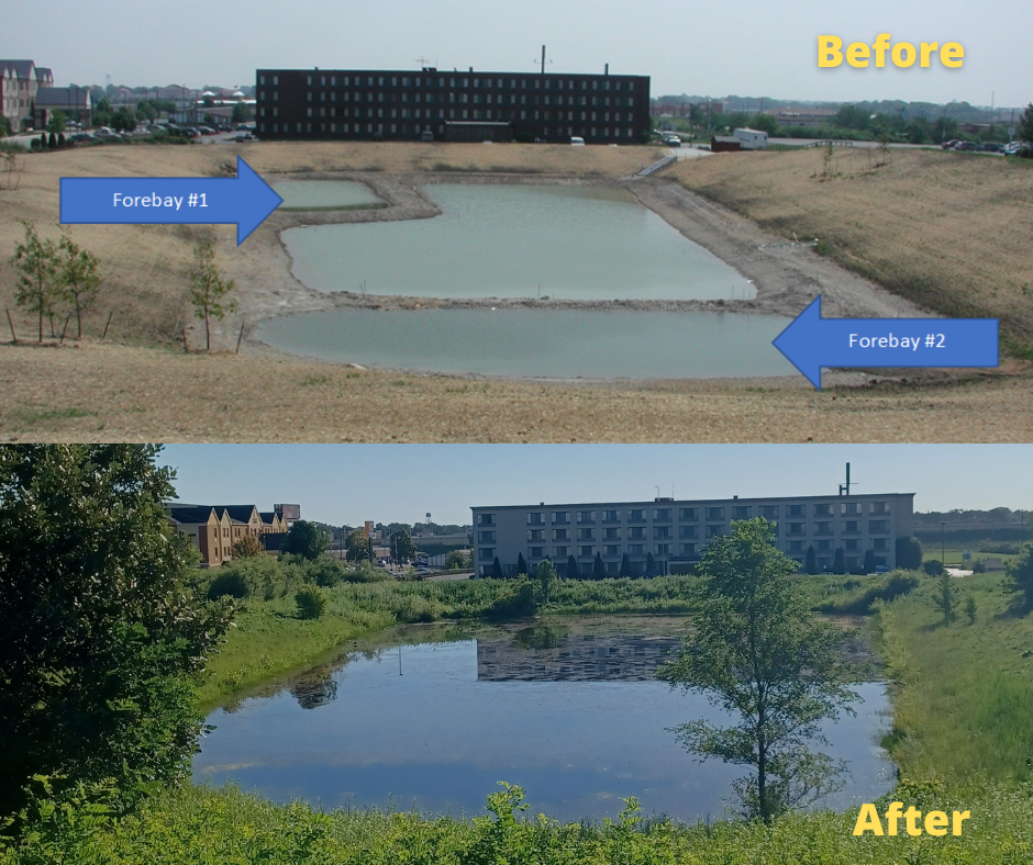 The images above show sediment forebays located in Kenosha County. Images provided by WDNR/RPW.