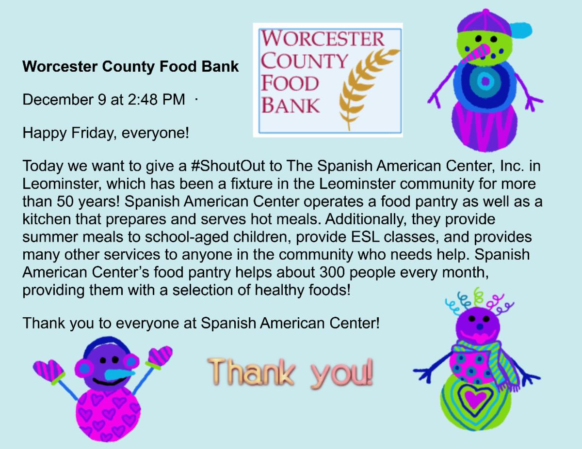 - On November 23rd we held the staff Thanksgiving lunch. On this date we honored and recognized the kitchen staff for their hard and continuous work with the Center.