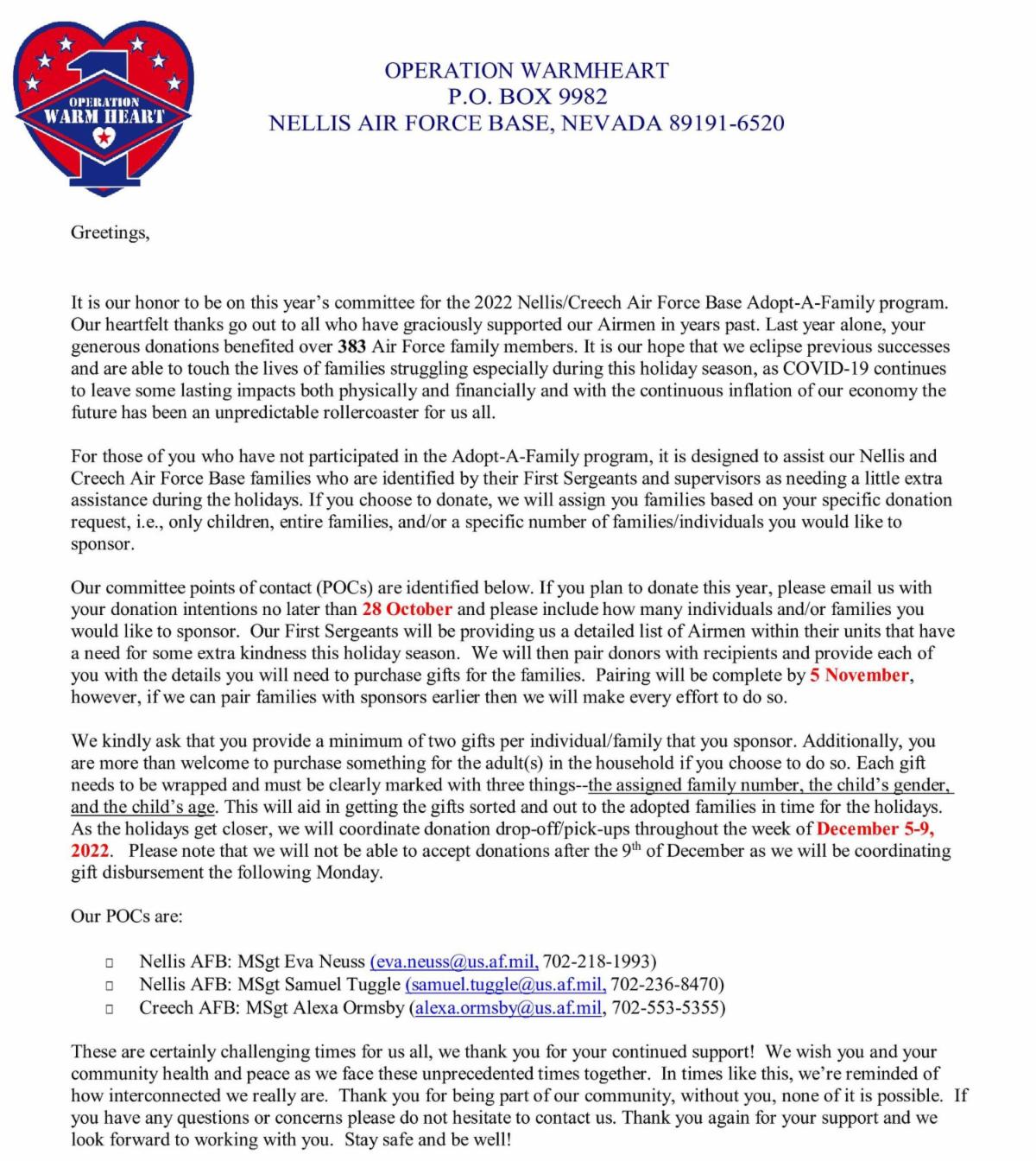 I hope this is helpful, and thanks again for supporting our service members! I’ve got men and women in my family who have or are currently serving, so it’s really meaningful to me.