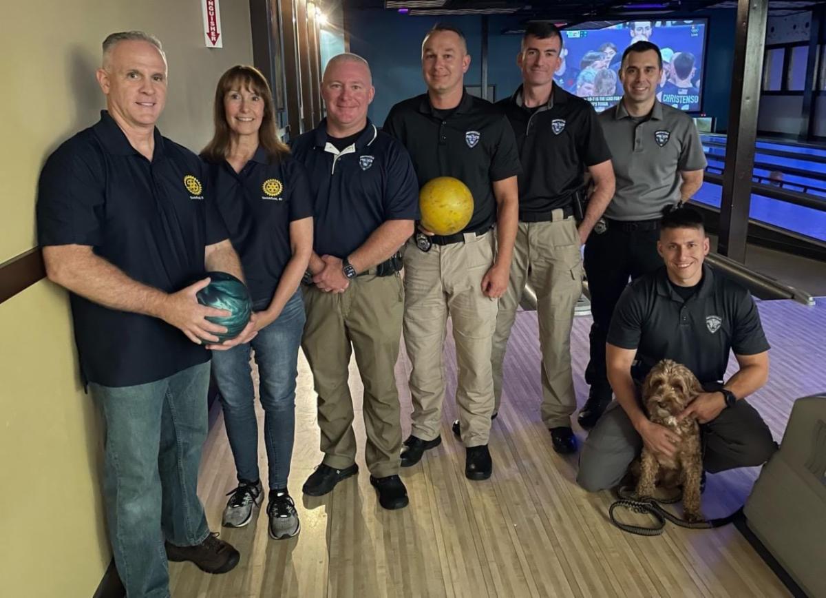 On August 7th, Smithfield Police teamed up with Smithfield Rotary, Smithfield YMCA, and CW Lanes to provide residents of the Northern RI Shelter with a fun afternoon of bowling. Featured in the group photo are (L-R): Chief Richard St. Sauveur (Retired) & Ann Cote (both Rotarians), Sgt. Paul Gorman, SIO Chris McIntyre, SIO Brendan McDonald, DARE Officer Gary McDole, SRO Ryan Perry & GRACE. A great afternoon for all involved!!!