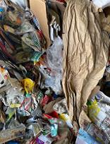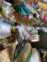 | Take a look at the photos below, can you spot the recycling errors? There are plenty in there, enough to cause a load to be rejected by Rhode Island Resource Recovery Corporation. These photos are from a Smithfield load that was rejected for recycling just last week. Plastic bags are the number one contaminate! Not only are plastic bags not allowed, but often residents carry their recycling to the cart in a plastic bag and simply toss the bag in the cart. Recycling material needs to be loose and un-bagged for the equipment at RIRRC to identify and sort them. Corded items, garden hoses, and other things that wrap around the recycling equipment at RIRRC, causing costly shutdowns are another major contaminates. Plastics that are not container shapes, cannot be recognized by the sorting equipment and therefor are not recyclable. Excessive moisture, when recycling cart lids are not kept closed during rain events effects the ability to process items, also causes rejected loads. Food waste, another offender, mixes with clean recycling, devaluing each commodity. | |