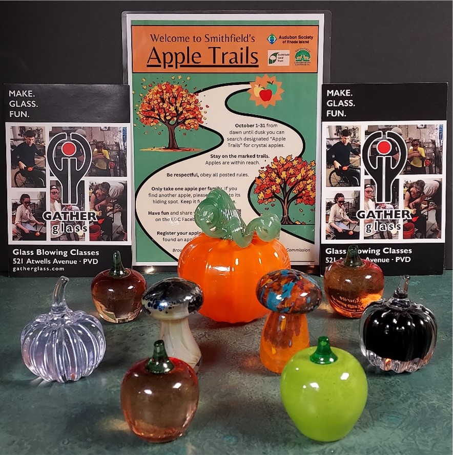 Starting on September 21, 2024, you will have another opportunity to find a crystal apple on the "Apple Trails" of Smithfield. The Commission is excited to welcome GatherWealth Investment Management and Gather Glass as a sponsor and maker of this year’s crystal apples and pumpkins. These one of a kind hand blown apples, pumpkins and mushrooms are made here in Rhode Island by Gather Glass’s skilled artisans. The apples and pumpkins will be hidden on trails of Olivia's Forest, Powder Mills Wildlife Refuge and, for the first time, on the trails at Camp Shepard and the woodland trails at Deerfield Park. Crystal apples will be paired with gift cards to local businesses on a first come, first served basis. Find a crystall apple or pumpkin on the trails and register it to claim your gift card. Please check the EDC Facebook page for additional information regarding this year's Apple Trails event.