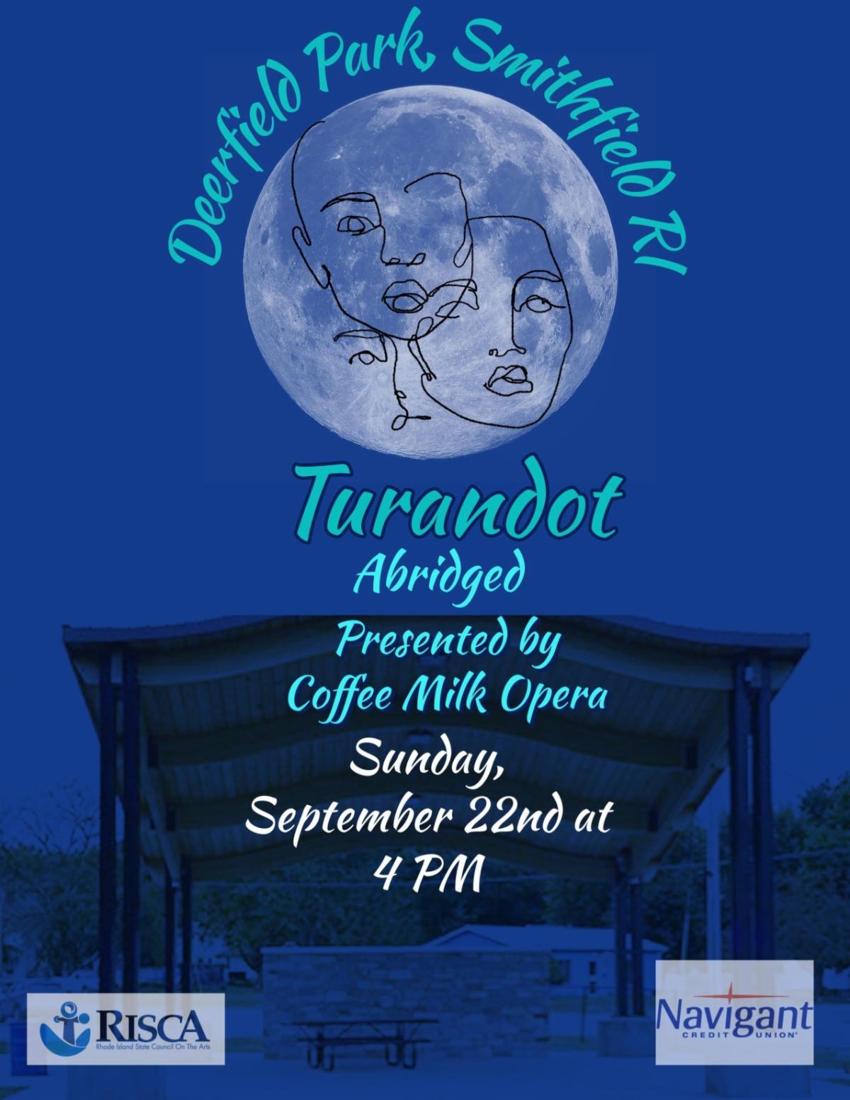 Through the generous support of RISCA and the Smithfield Recreation Department, Coffee Milk Opera is able to produce Opera in the Park. Turandot will mark the second "Opera in the Park" performance, with hopefully many to follow! "Watching opera out in nature is a magical experience. Last year children blew bubbles and ran around while parents picnicked. Friends played games, and snacked, all while enjoying some beautiful music. We want to make opera accessible for everyone.” Krista Wilhelmsen, co-founder.