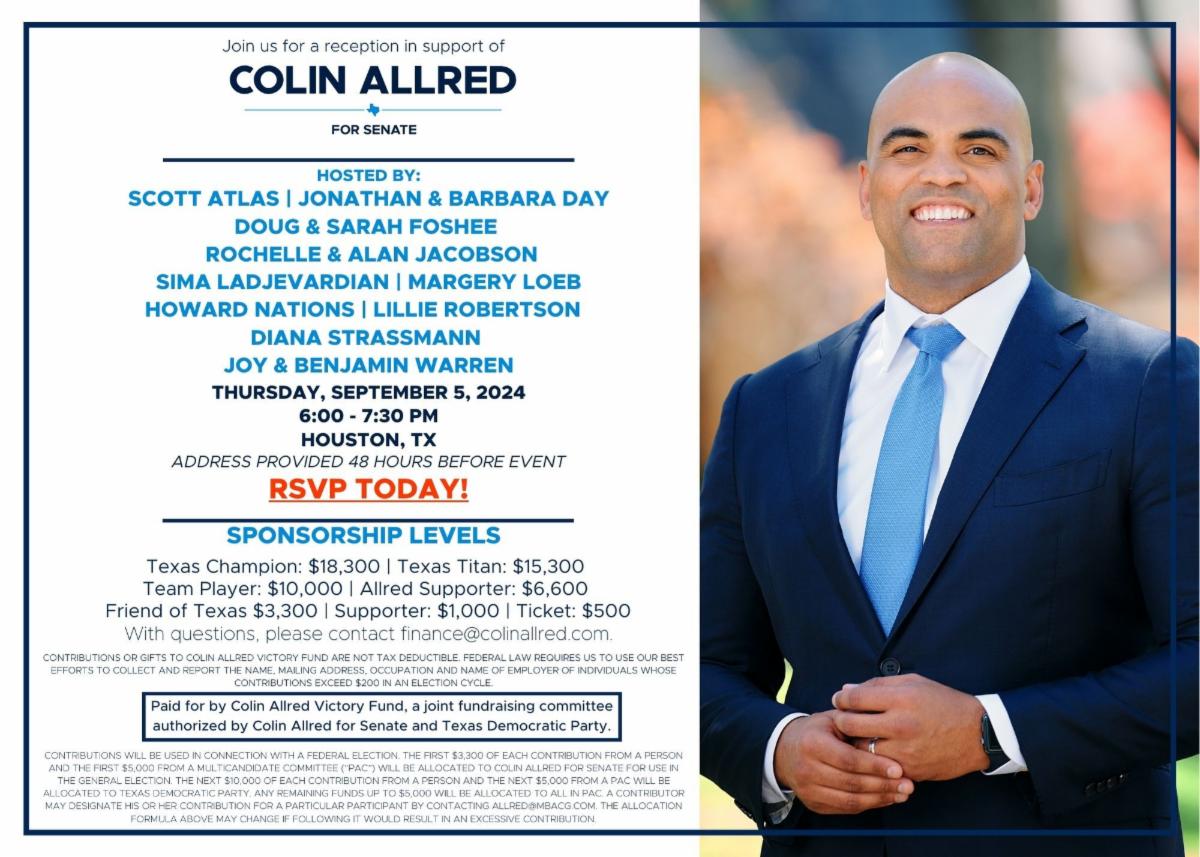SEPT 5 - COLIN ALLRED IN HOUSTON, 6:00pm, location provided upon registration