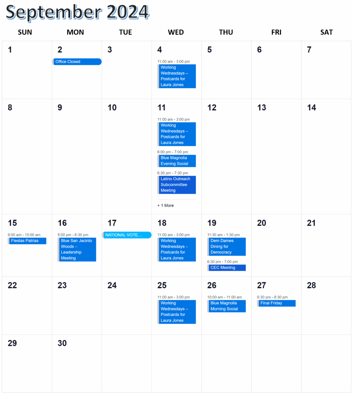 In fact, Courtney is already hard at work calling, emailing, and texting our past volunteers who have already served as Election Judges and Clerks. And indeed, she will probably be reaching out to all of us in the next few weeks as she is charged with finding almost 450 Democrats to serve as poll workers all on one day, November 5, 2024. So, if you hear her call, please answer.