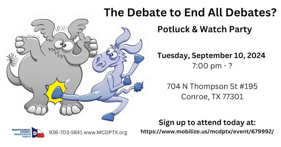 These Blue groups have some great social events coming up! So watch for information about how to get together with your fellow Dems and have fun while helping to flip Montgomery County, Texas and the USA Blue!