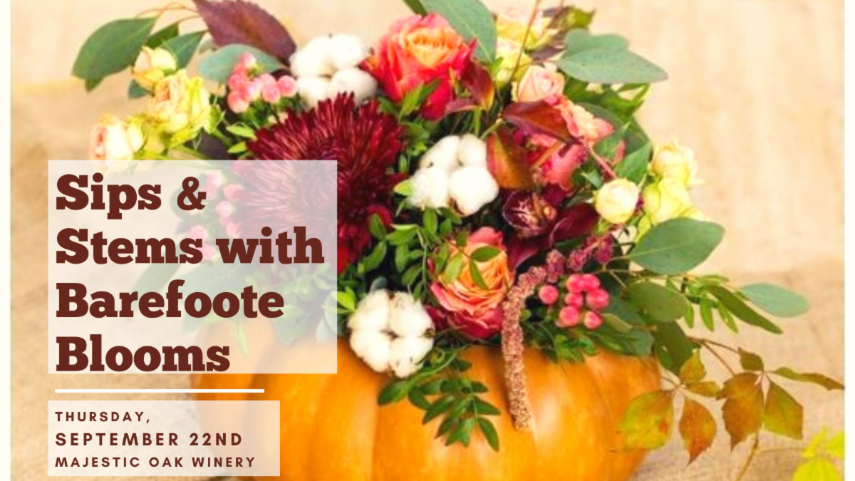 Come enjoy a glass of wine or craft beer while creating a fall pumpkin centerpiee using fresh locally grown flowers from Barefoote Blooms in Waterville.