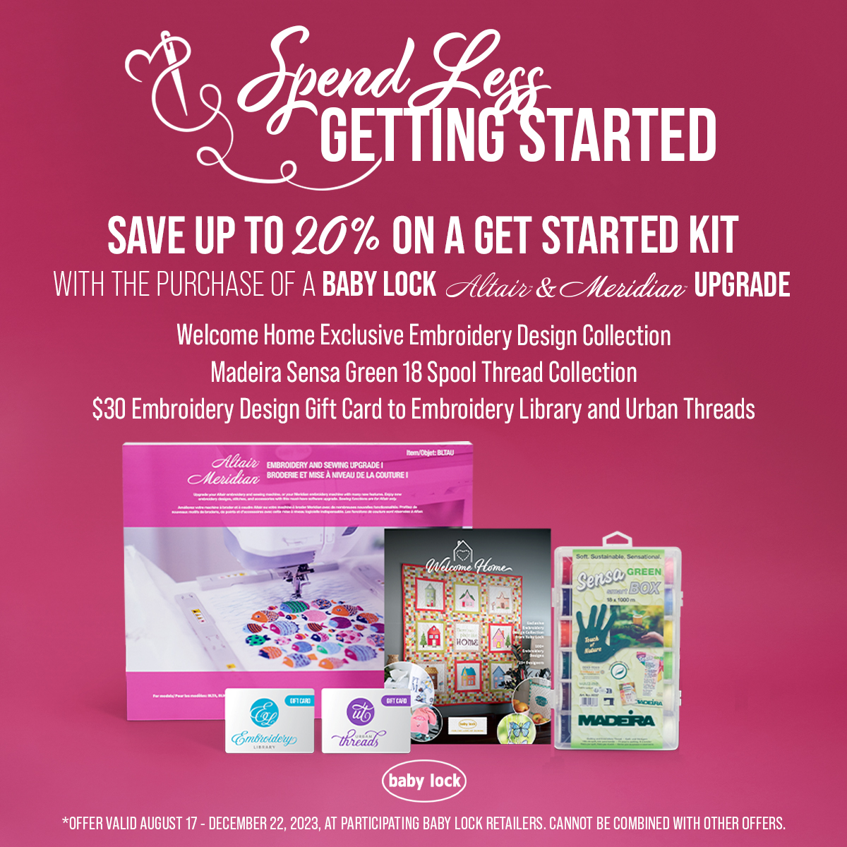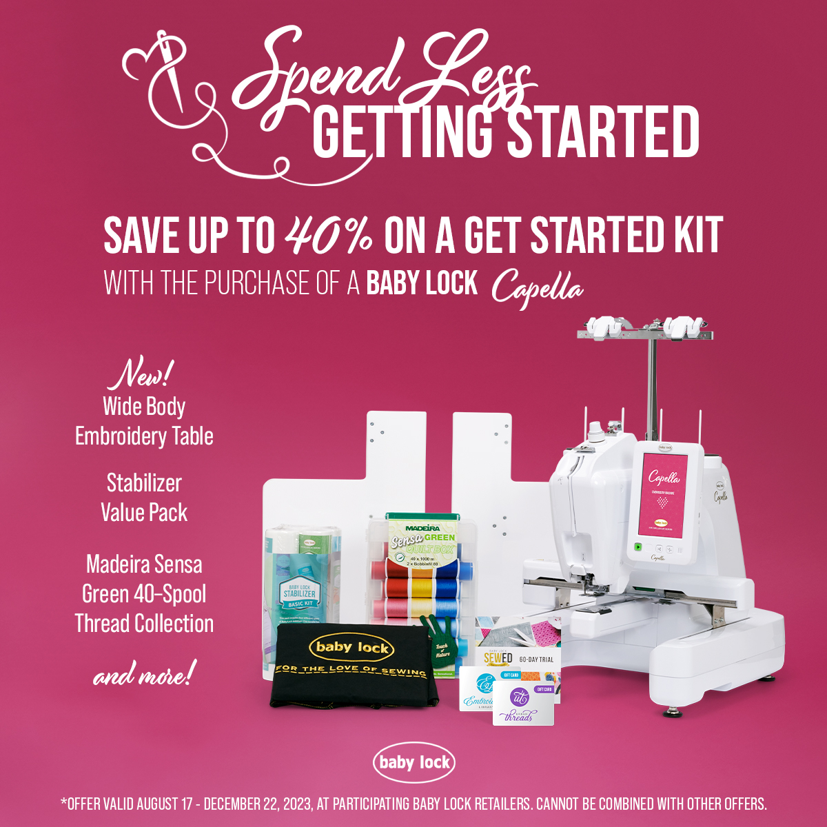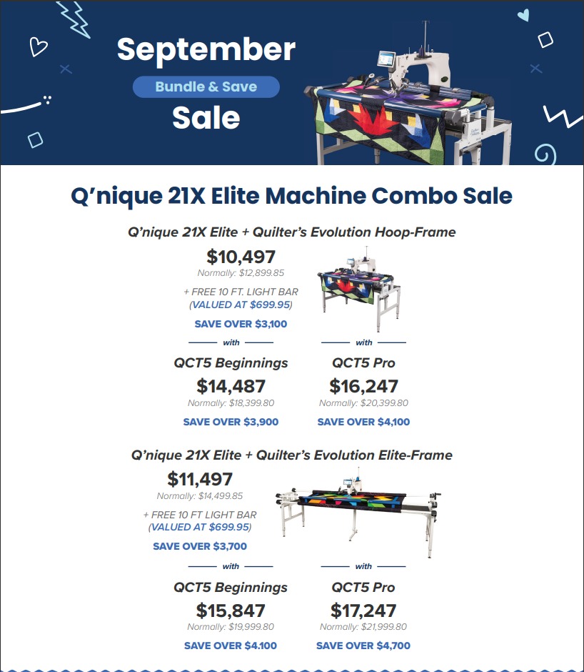 Purchase must be made with your Sewing and More credit card between September 8 - 25 2023 at your local dealer to qualify.*