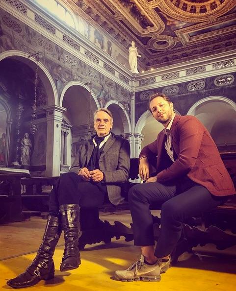 Jeremy Irons with CNN Style host Derek Blasberg in San Sebastiano