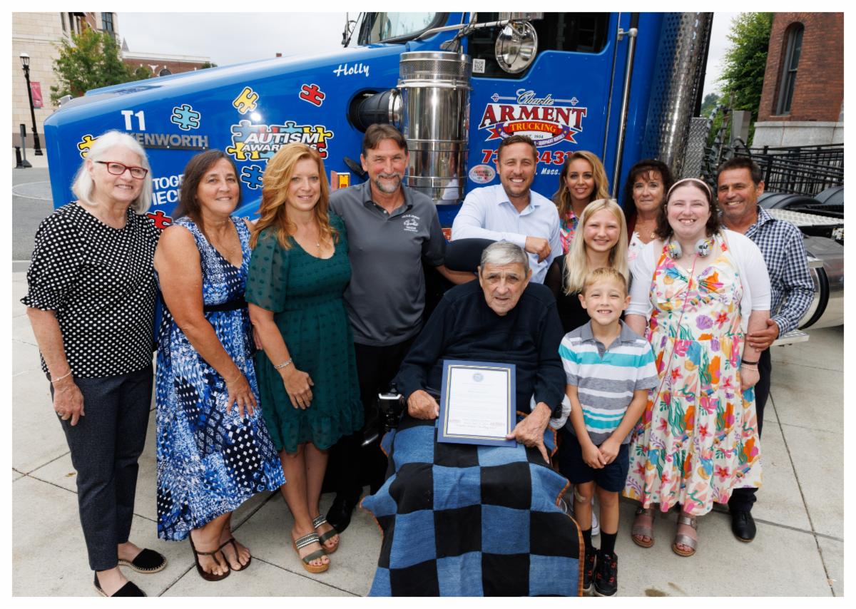 The announcement was made by Dr. Robert Johnson, Western New England University President, and the 2023 City of Bright Nights Ball Honorary Chair. Springfield Mayor Domenic Sarno proclaimed the day, August 19, 2024, as Charlie Arment Trucking Day.