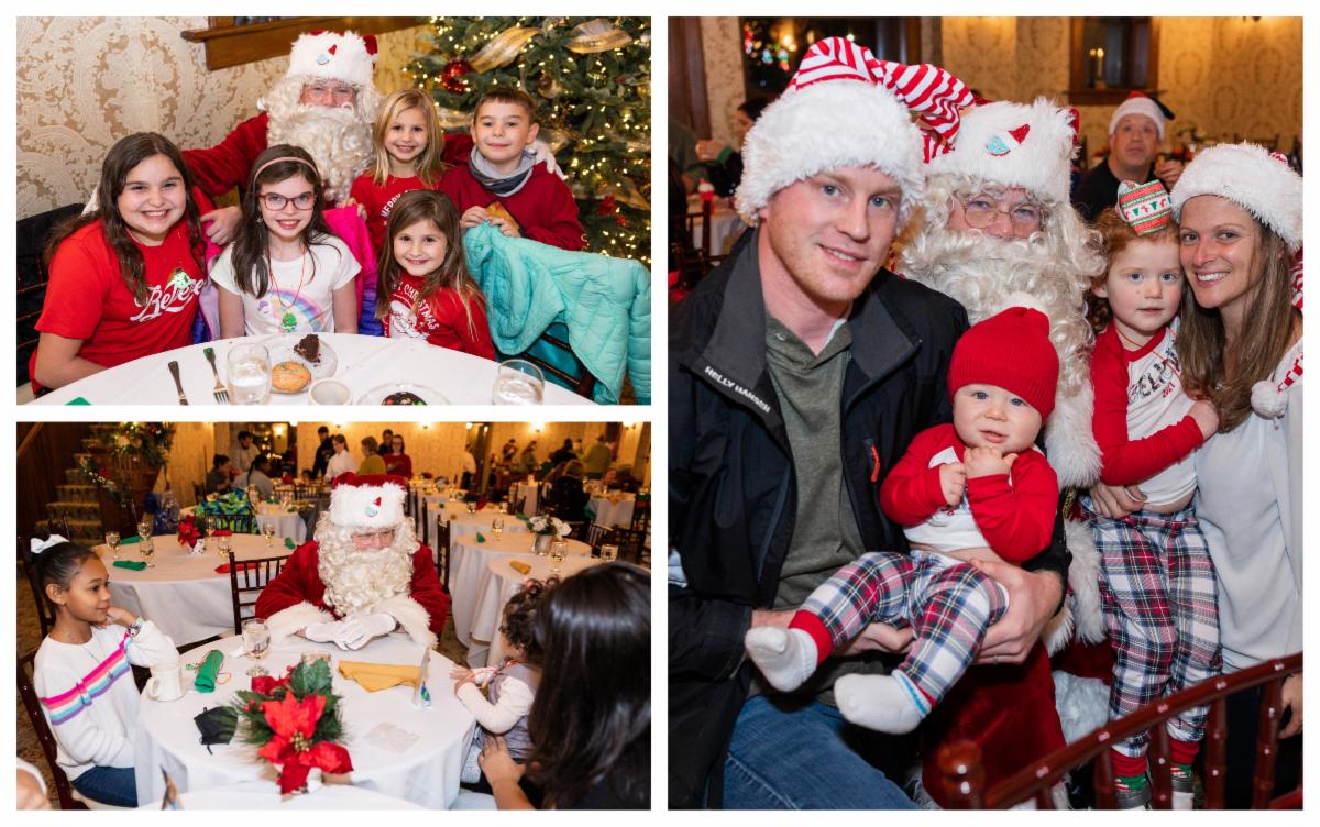 First, guests travel through display after display, from Seuss Land to North Pole Village, arriving at the Victorian-era carriage house. They enjoy a sumptuous dinner, and a delightful experience with Santa. He visits ever table and has a special gift for every child.