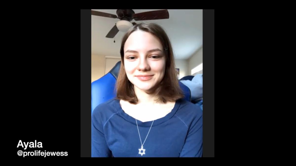 Ayala (@prolifejewess on Twitter) at the 2023 Rehumanize March for Life meetup