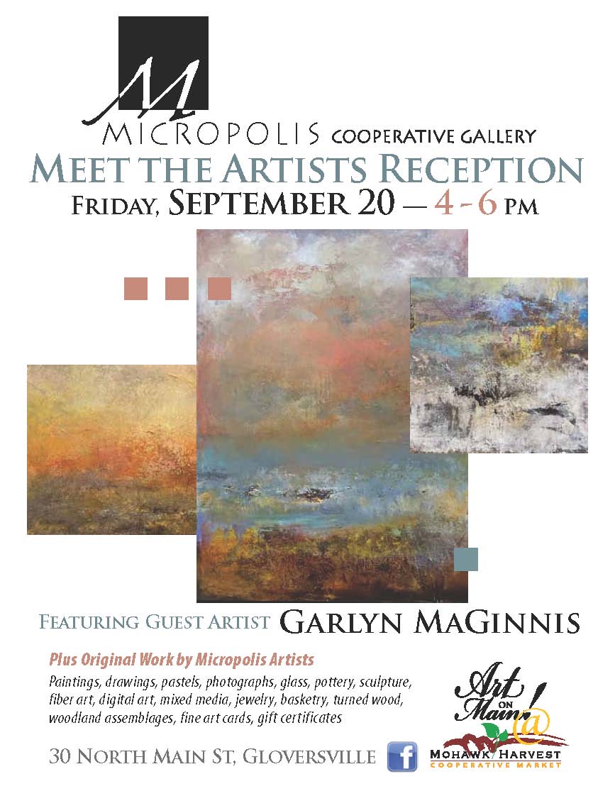 On Friday, Sept. 20, Micropolis Cooperative Gallery, located inside Mohawk Harvest Cooperative Market at 30 N. Main St., will host a “Meet the Artists Reception” from 4 p.m. to 6 p.m. The featured guest artist is Garlyn MaGinnis, a contemporary abstract landscape painter.
