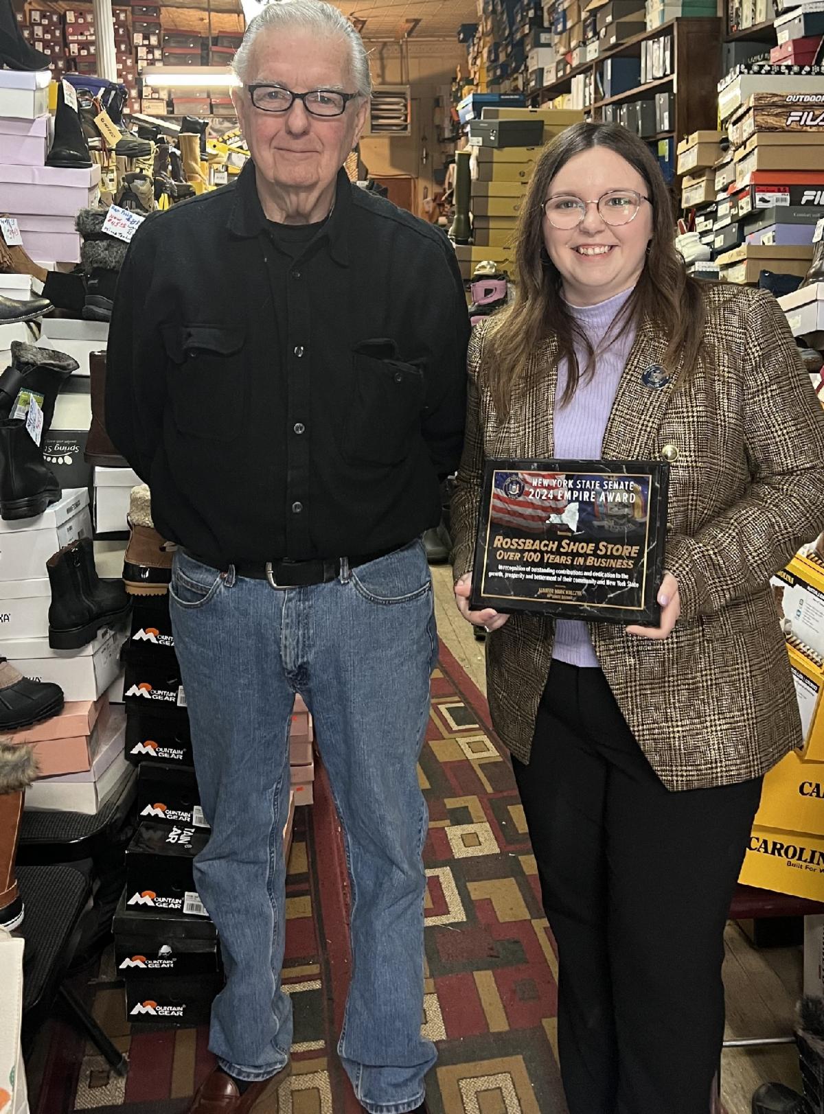 Speaking of small business celebrations, Rossbach Shoe Store received a New York State Senate Empire Award, sponsored by Senator Mark Walczyk. The Facebook post stated, “Running a small business takes a lot of time, hard work, and dedication. Not to mention, knowing how to deliver customer service that is second to none. And that's exactly what Charlie Rossbach at Rossbach Shoe Store has been doing. Rossbach's has been in business for more than 100 years. Charlie has been a fixture in Downtown Gloversville and has a reputation for always going above and beyond for his customers. Olivia from Senator Walczyk's office stopped by and presented Charlie with a NYS Senate Empire Award. Congrats to Rossbach's for this honor and here's to another 100 years!” Congrats to our longtime Downtown Gloversville popular business!