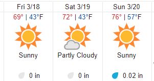 The Spring Break three day weekend is looking amazing. Those weather Witches and Wizards have really taken their duties to the next level of weather perfection this season.