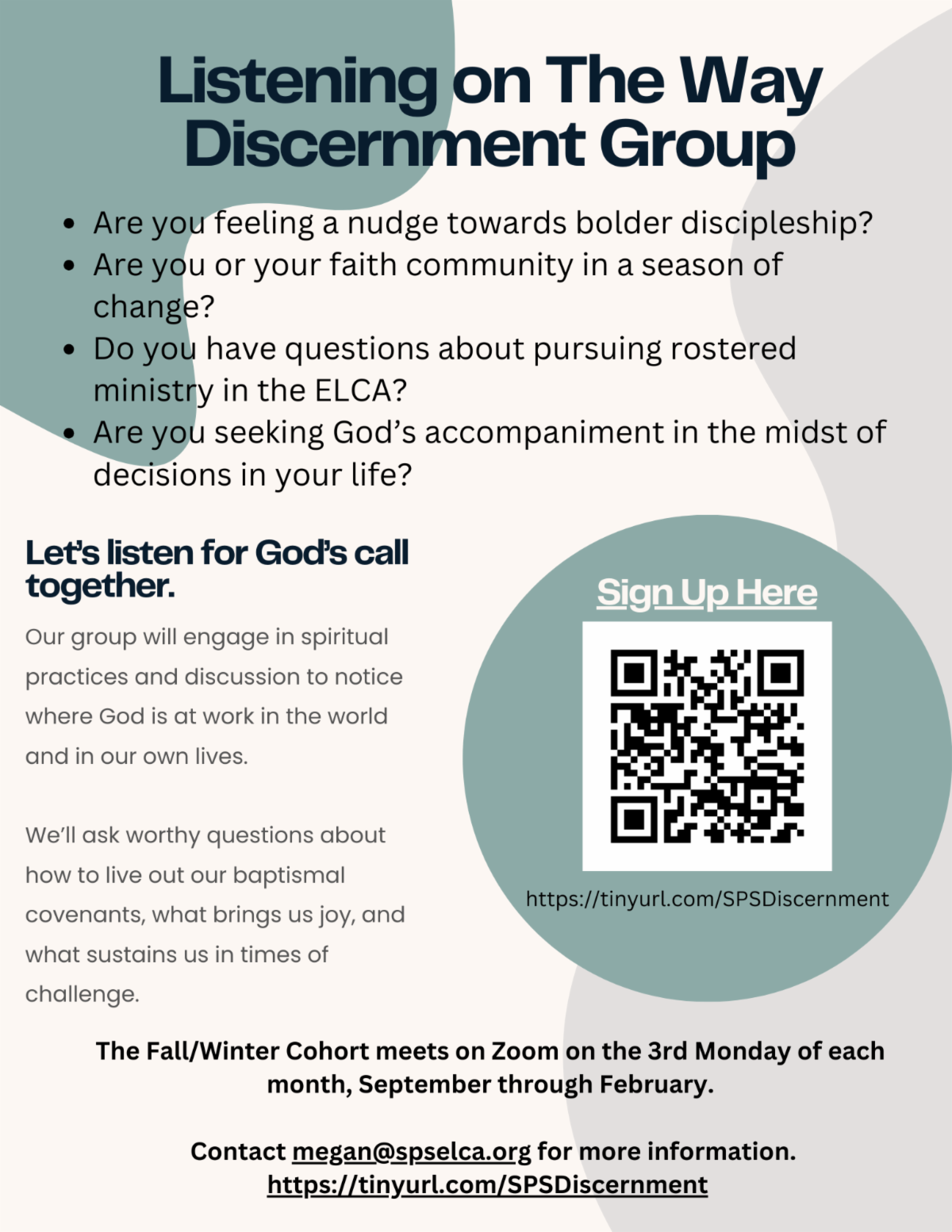 We are excited to share that our 2024-25 Thriving Leadership Formation Cohort Groups are now forming. Cohorts come together with the intent of creating nurturing and empowering times, spaces, and relationships. They are intended to foster spiritual and contemplative practices in order to enrich life and ministry, and help the church and its leaders thrive. Cohorts meet virtually for 12 sessions using a curriculum of spiritual practices. Membership is open to rostered and non-rostered leaders in ELCA Regions 1 and 2. We ask those interested to fill out the interest form.