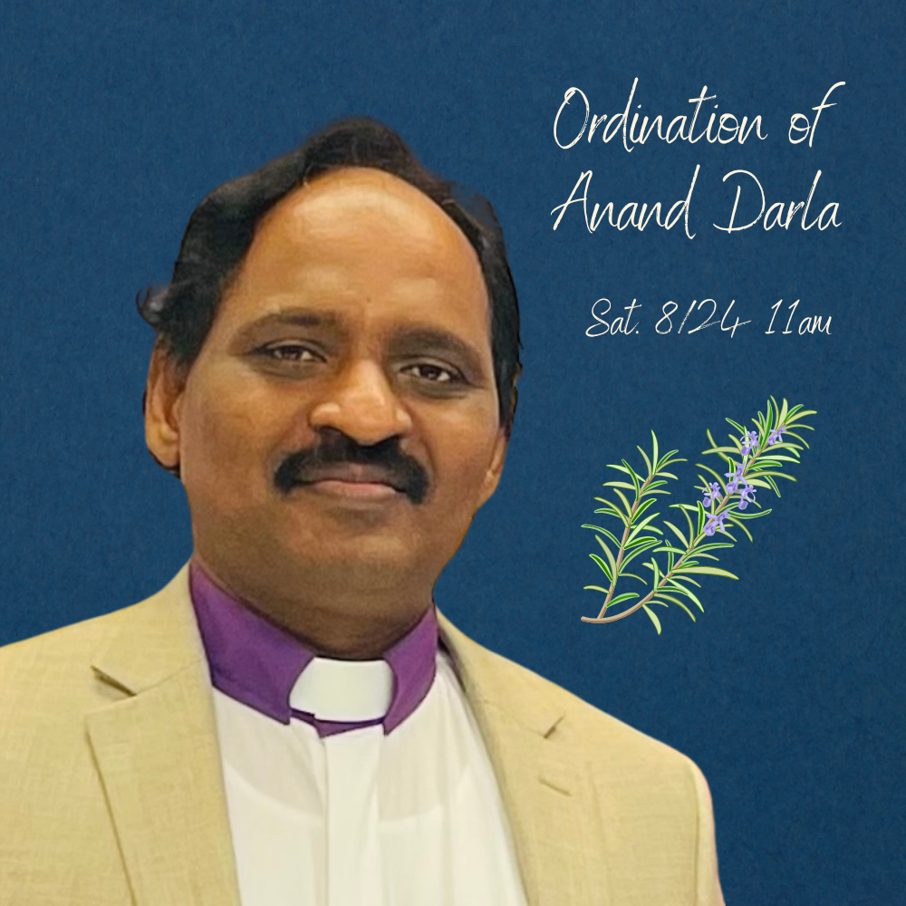 With joy and thanksgiving, you are invited to witness and celebrate the ordination of Anand Darla to the Ministry of Word and Sacrament.