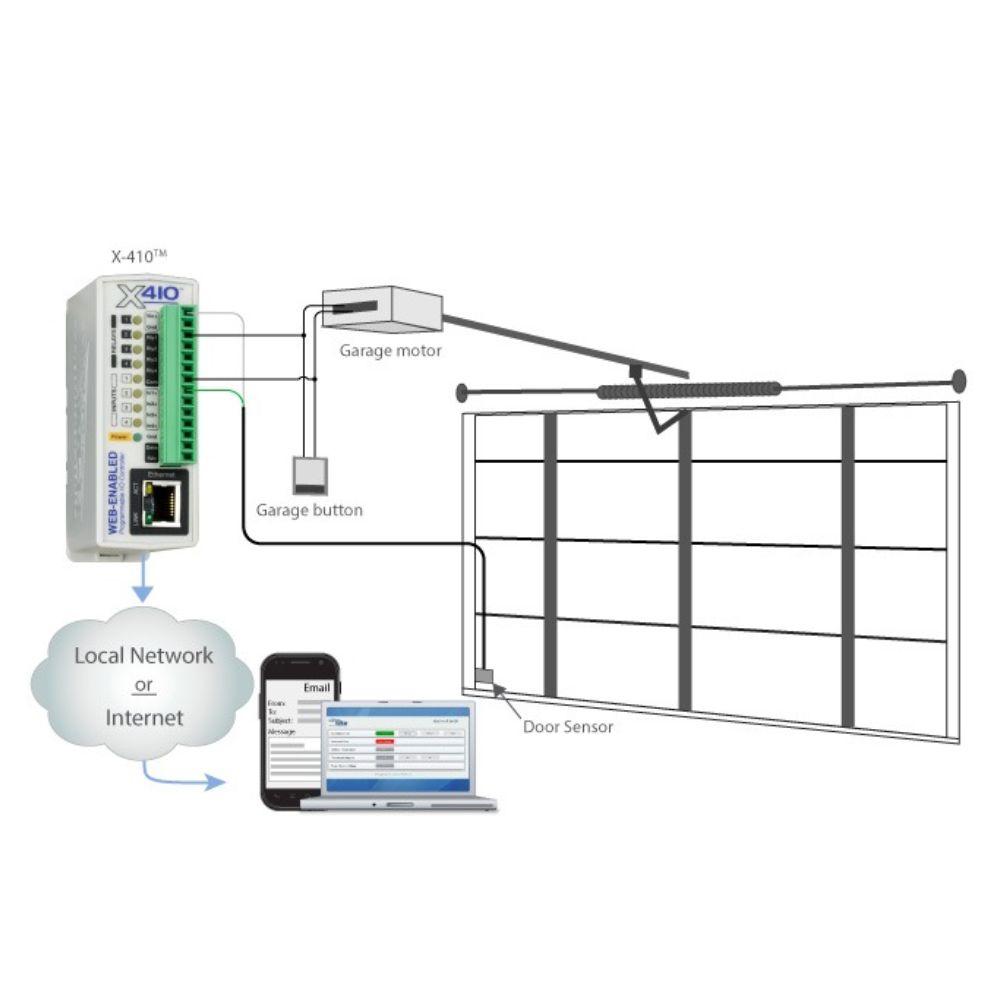 With its built-in web server, the X-410 provides secure, global access to monitor and control your garage door from anywhere—no cloud services or subscriptions are needed.