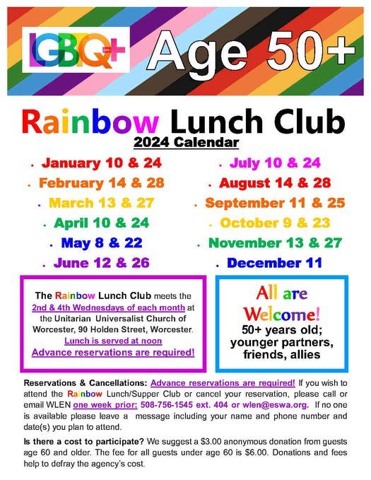 If you wish to attend the Rainbow Lunch or Supper Club