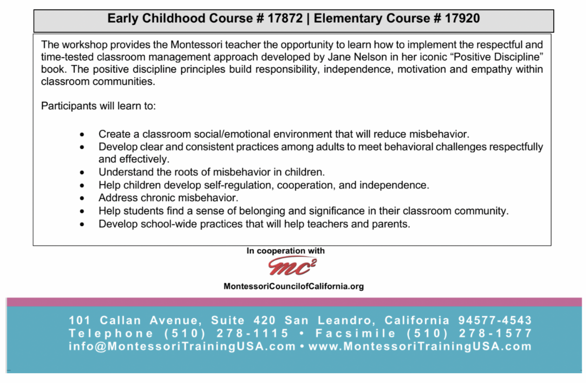 Teacher, Discovery Children's House in Palo Alto, CA; dchouse1@gmail.com or for more info (8/10)