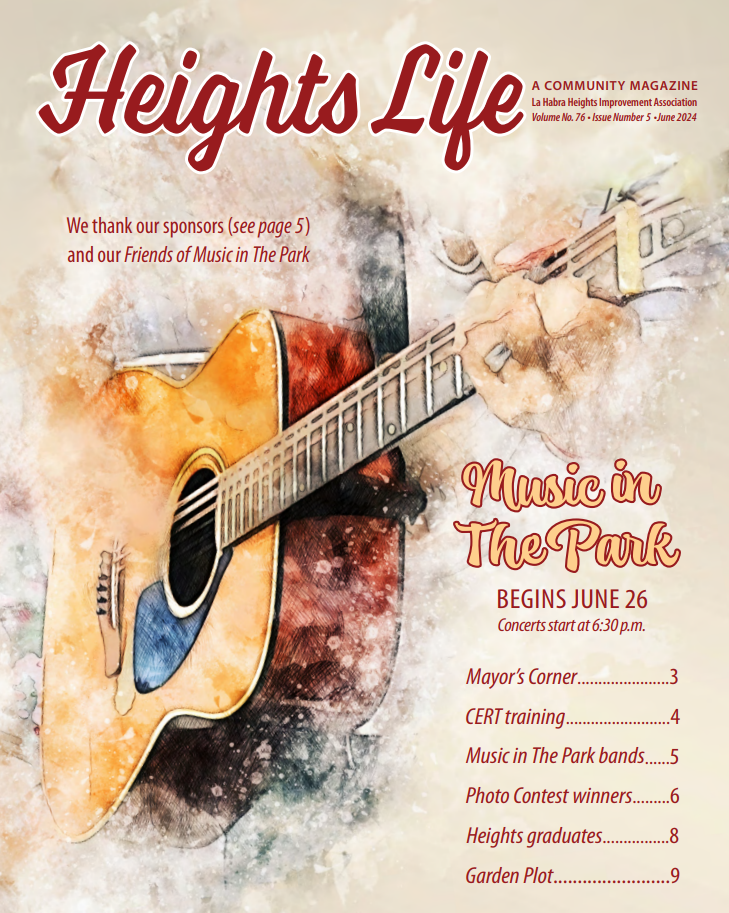 In this month's issue of Heights Life, you'll get insight into the happenings in the city from your very own mayor. You can read about the Community Emergency Response Team and how your contributions as a Cert volunteer can make your community safer. The issue also features the 2024 photo contest winners and highlights the Class of 2024 high school graduates from La Habra Heights.