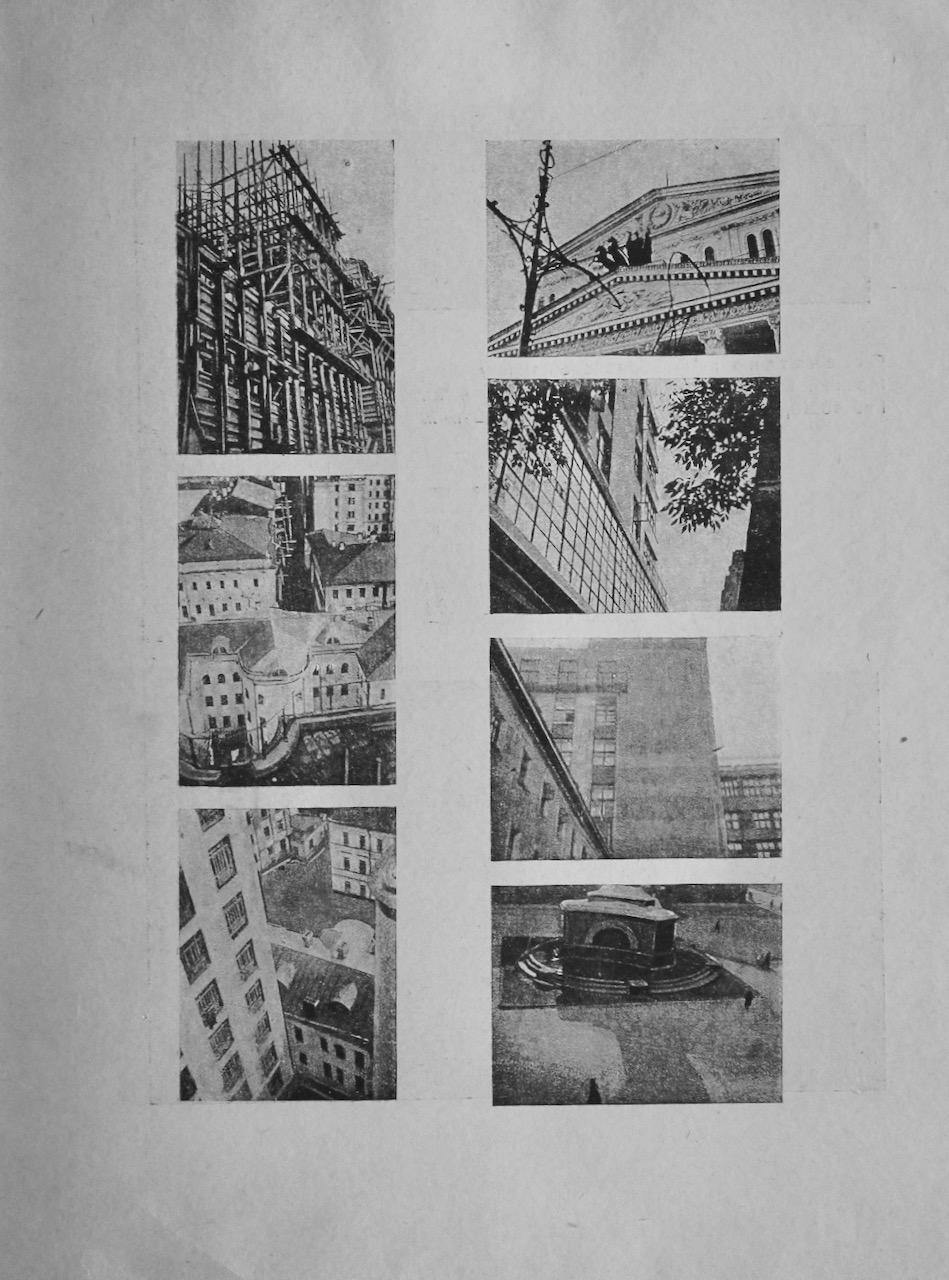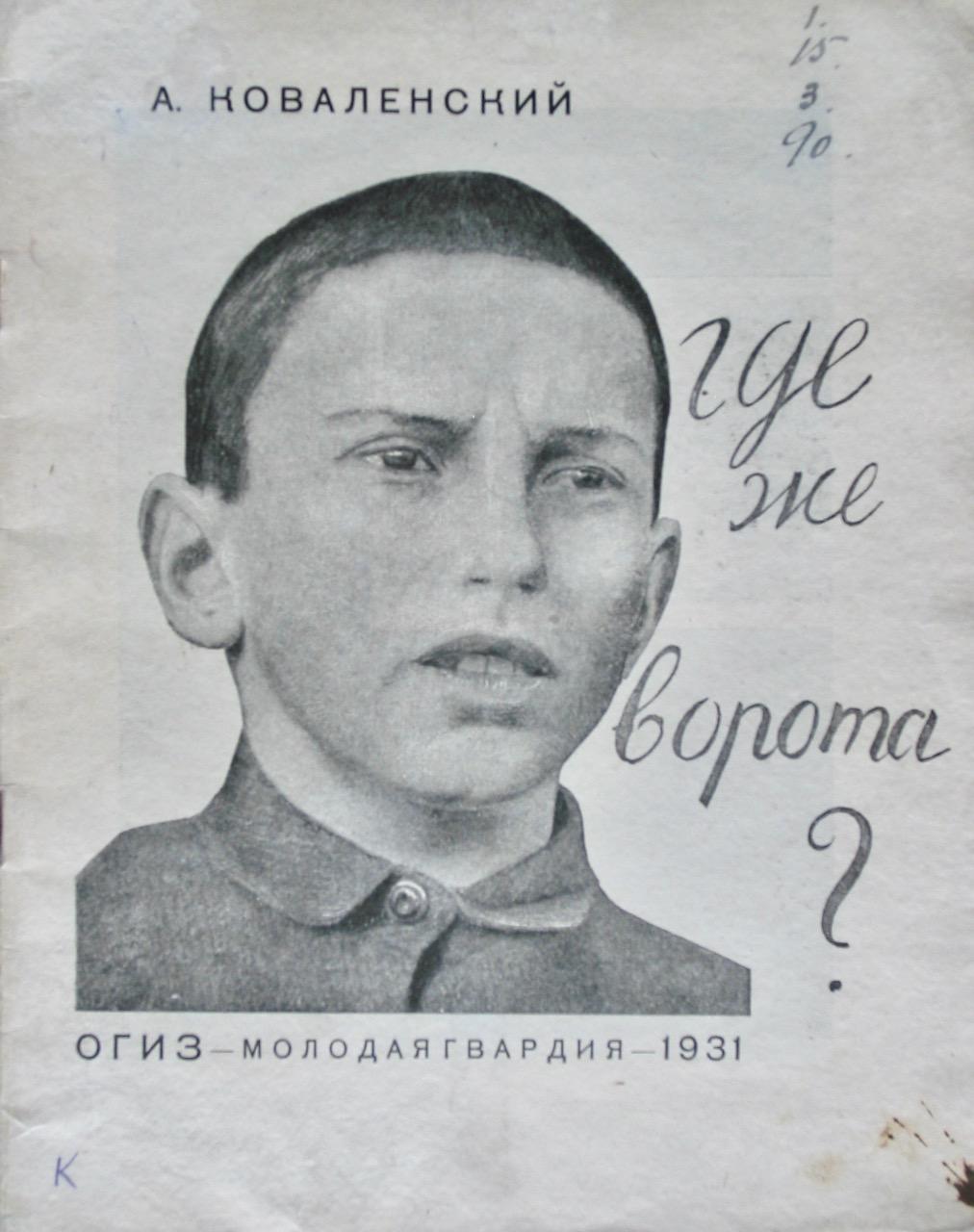 7--Kovalensky, A. (text), Shifrin, N. (photo illust). Gde zhe vorota? ("Where's the Gate?"). 1931. Photo illustrated essays of civic progress in Moscow during first Five-Year Plan. G-VG copy, moderate handling and soiling at covers with scattered unobtrusive writing. Ogiz Molodaya Gvardiya. Moscow. Tirage, 20,000. 32 pp. 8 3/4 x 6 3/4”. [See Karasik, M., The Shock-Work Book for Soviet Children. Udarnaia kniga Sovetskoi detvory, pp. 112-113, 2010.] $1,750.