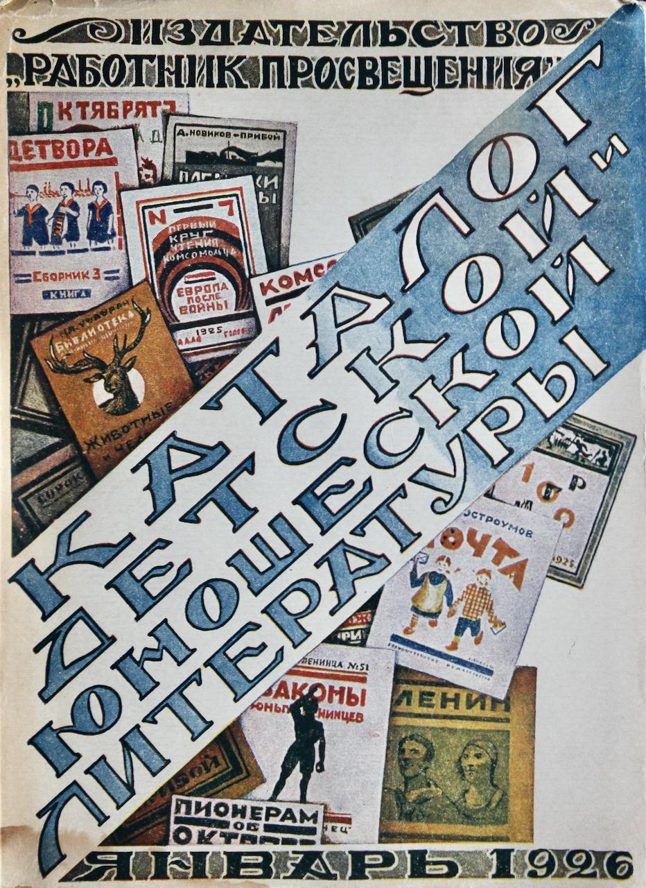 8--Katalog Detskoi i Yunosheskoi Literatury. ("Catalog of Children's and Youth Literature"). January 1926. Voluminous catalog listing wide range of titles from Mayakovsky to Marshak. Near Fine copy with minor toning, stain at covers and private owner's bookplate at reverse of front cover. Education Worker. Moscow. Tirage, 5,000. 240 pp. 7 1/8 x 5 1/4". $850. | | | |
