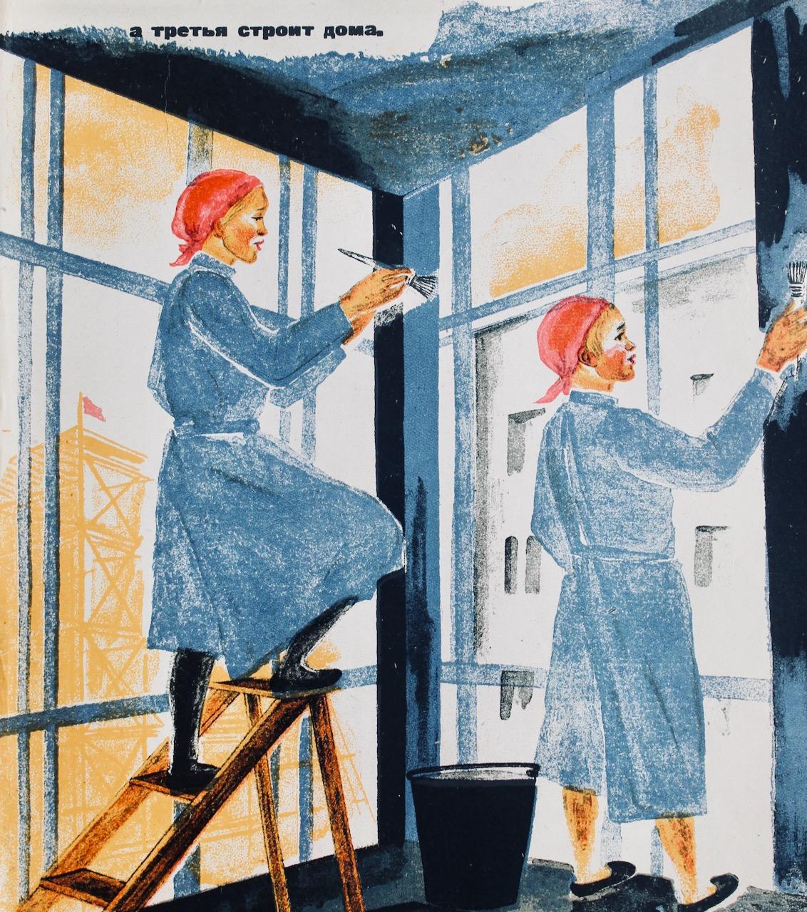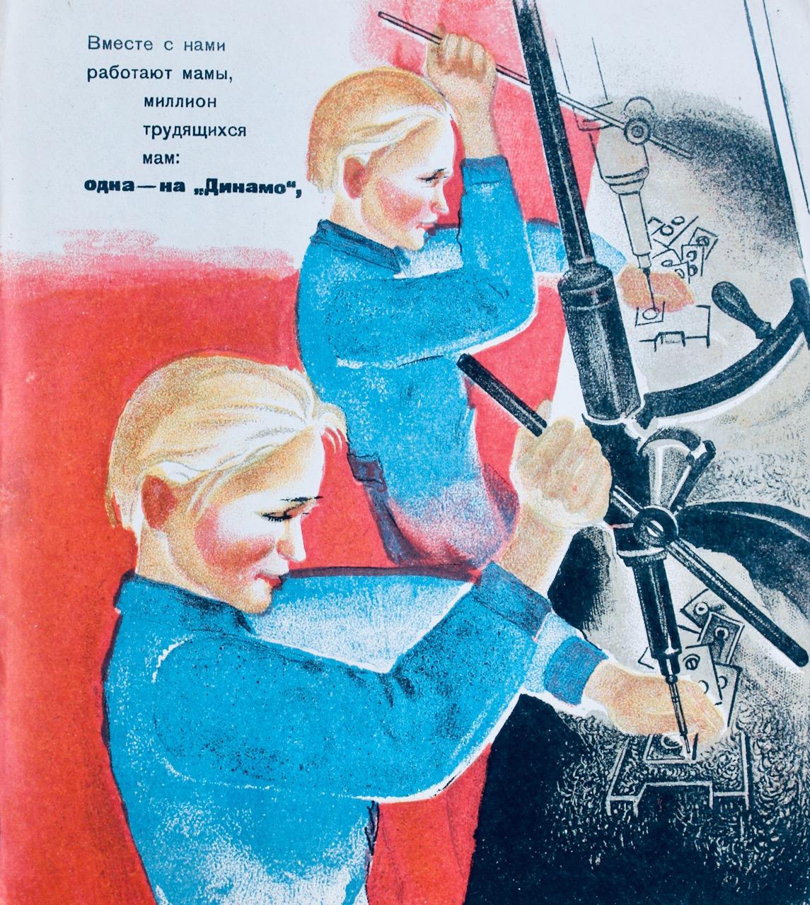 11--Sakonskaia, N. Mamin Most. ("Mom's Bridge"). 1933. Noted "For Preschool Age", replete with full page illustrations by Zvonareva, T. of women's technical accomplishments. VG copy, minor toning at covers. Ogiz Molodaya Gvardiya. Moscow. Tirage, 50,000. 16 pp. 9 x 7 3/4". $1,500.