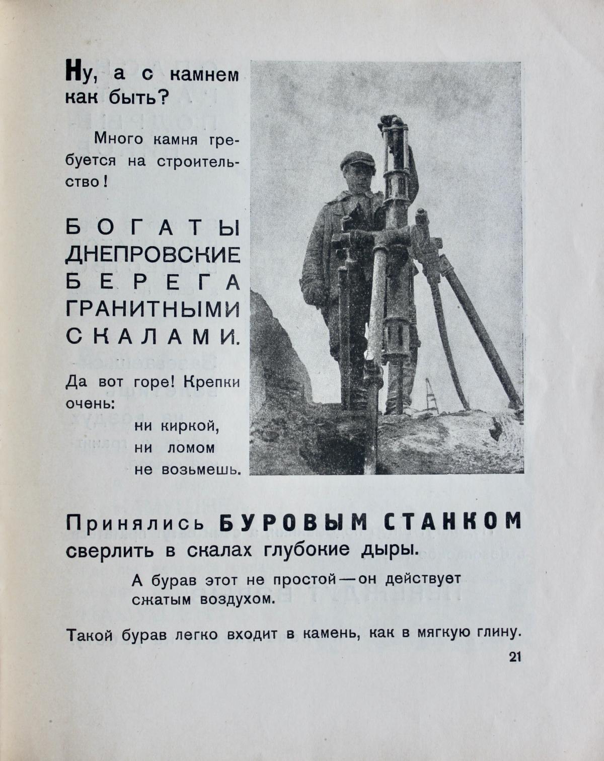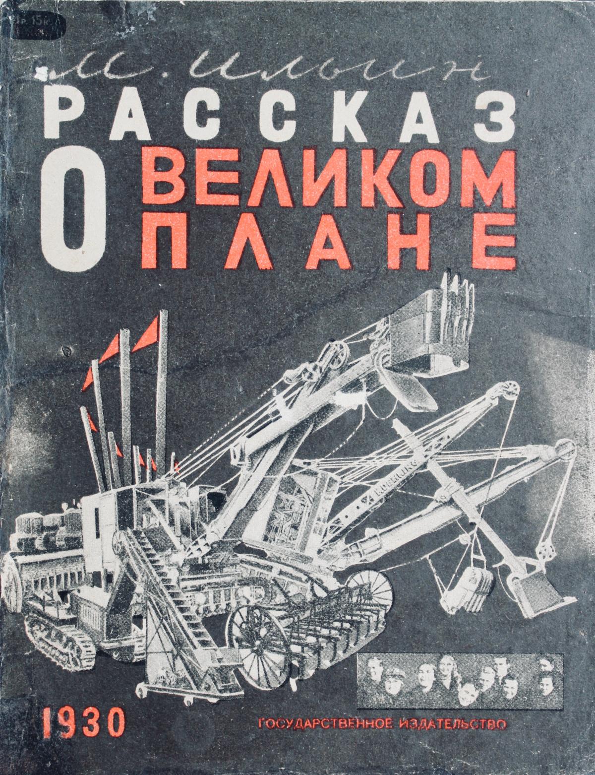 12--Il'in, M. (text), Razulevich, M. (photo illust.)..Rasskaz o Belikim Plane. ("The Story of the Great Plan"). 1930. Soft cover edition chronicling progress of the first Five-Year Plan. VG copy. GIZ. Moscow. Tirage, 50,000. 176 pp. 8 3/8 x 6 3/4". [See Karasik, M., The Shock-Work Book for Soviet Children. Udarnaia kniga Sovetskoi detvory, pp. 126-127, 2010.] $950.