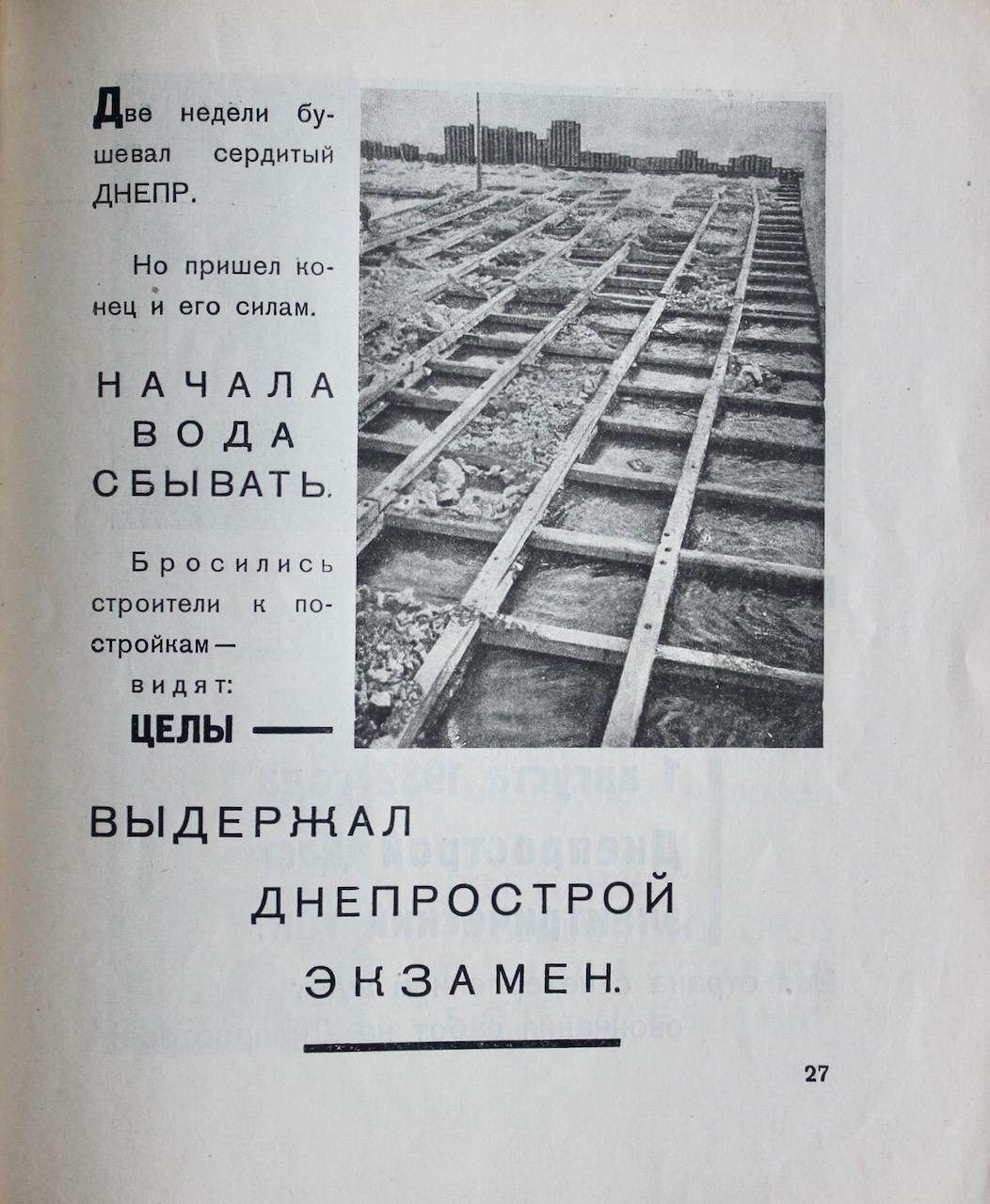 3-- Mislavsky, N. Dneprostroi. 1930. Cover and photo illustrations by Lantsetti, V. VG copy. Gosizdat. Moscow. Tirage, 30,000. 32 pp. 8 1/2 x 7”. [See Karasik, M., The Shock-Work Book for Soviet Children . Udarnaia kniga Sovetskoi detvory, 32 pp. 72-74, 2010.] $900.