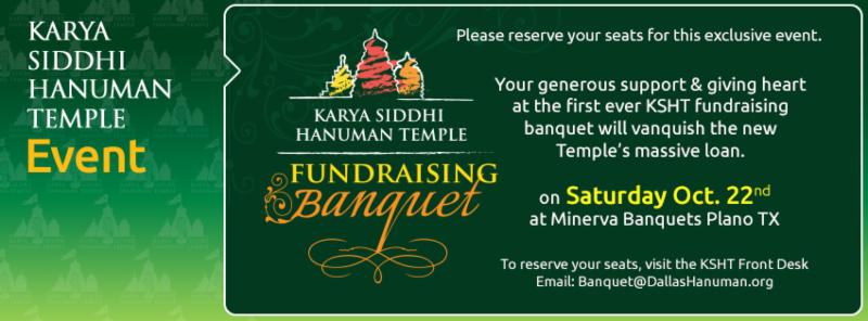 Reserve your seats at the Temple Front Desk for the first ever KSHT fundraising banquet to raise the required funds for the Temple's Rajagopura & Dwaja stambha!